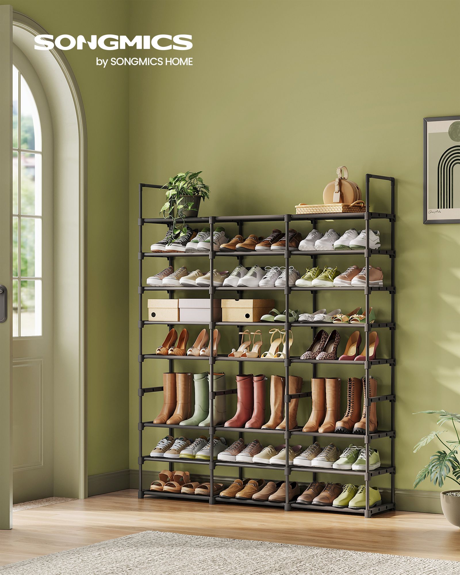 Med plads til op til 48 par sko tilbyder denne skoreol en imponerende opbevaringskapacitet. De 8 hylder giver dig rigelig plads til at organisere dine sko, men reolen er ikke kun begrænset til fodtøj. Den alsidige opbevaringshylde kan også bruges til opbevaring af bokse, tasker og andre genstande, hvilket gør den til en alsidig løsning i dit hjem. Uanset om du har brug for ekstra opbevaringsplads i gangen, soveværelset eller på kontoret, vil denne skoreol imødekomme dine behov.