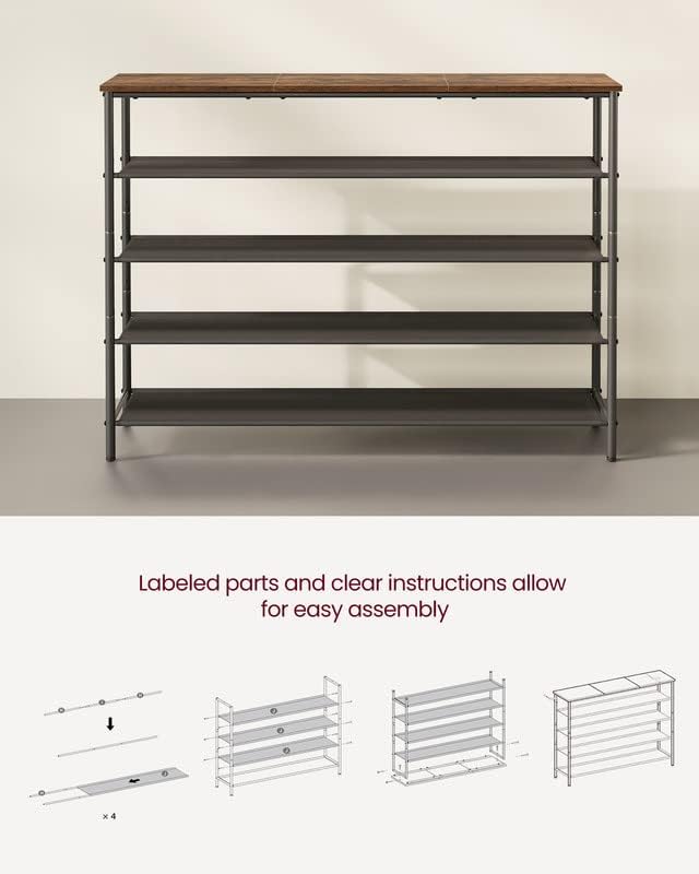 Glem besværet med at samle møbler. Denne skoreol leveres med detaljerede instruktioner og tydeligt markerede dele, så du hurtigt kan få den samlet og i brug. Uanset om du placerer den i entréen, garderoben eller soveværelset, passer denne skoreol perfekt ind i ethvert rum, hvor du har brug for ekstra opbevaringsplads. Den alsidige brug gør den til en ideel løsning for enhver, der ønsker både funktionalitet og æstetik i deres opbevaringsmøbler.