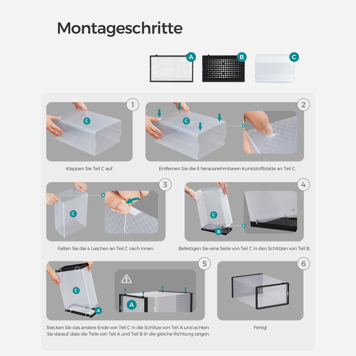 Er du træt af rodet med sko, der aldrig har deres eget sted? Vores sæt med 18 transparente skoæsker er løsningen på dit sko-kaos. Med en stilfuld, transparent sort finish kan du nemt holde styr på din sko-kollektion, samtidig med at de forbliver beskyttet mod støv og snavs. Den gennemsigtige front dør gør det muligt at få et hurtigt overblik over dine sko uden at åbne hver enkelt æske.