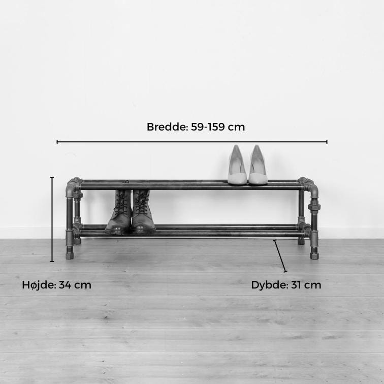 Vores Charlie smal skoreol er mere end bare en praktisk opbevaringsløsning. Den er også et miljøvenligt valg, der er designet til at vare i mange år. Skoreolen er fremstillet af holdbare vandrør, hvilket giver dig en bæredygtig og langtidsholdbar skoreol. Men det stopper ikke her – du har også mulighed for at udvide din skoreol i takt med, at dine behov ændrer sig. Vi tilbyder at du kan tilkøbe rør og samlestykker, så du kan tilpasse din skoreol når dine behov ændrer sig.