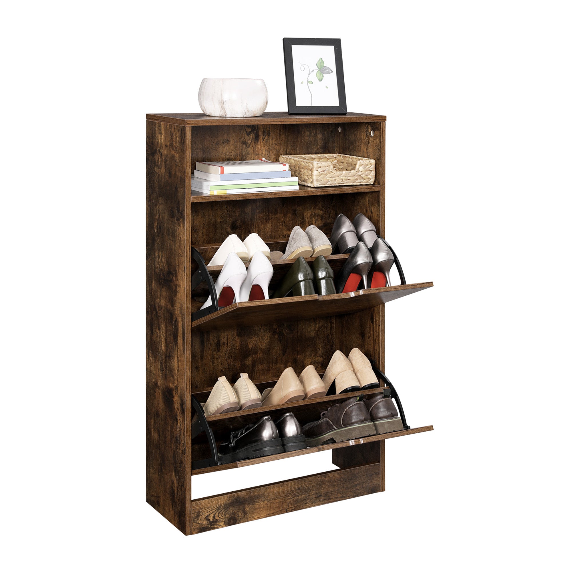 Oplev den ultimative løsning til skoopbevaring med dette skoskab, der er designet til at imødekomme dine behov. Med plads til 12 par kvindesko eller 8 par herresko bag de to flapper, sikrer du, at dine sko er pænt opbevaret. De fleksible indvendige rum kan justeres eller fjernes for at rumme højere sko som støvler og hæle, hvilket gør dette skoskab til en alsidig og praktisk løsning for ethvert skoreolbehov.