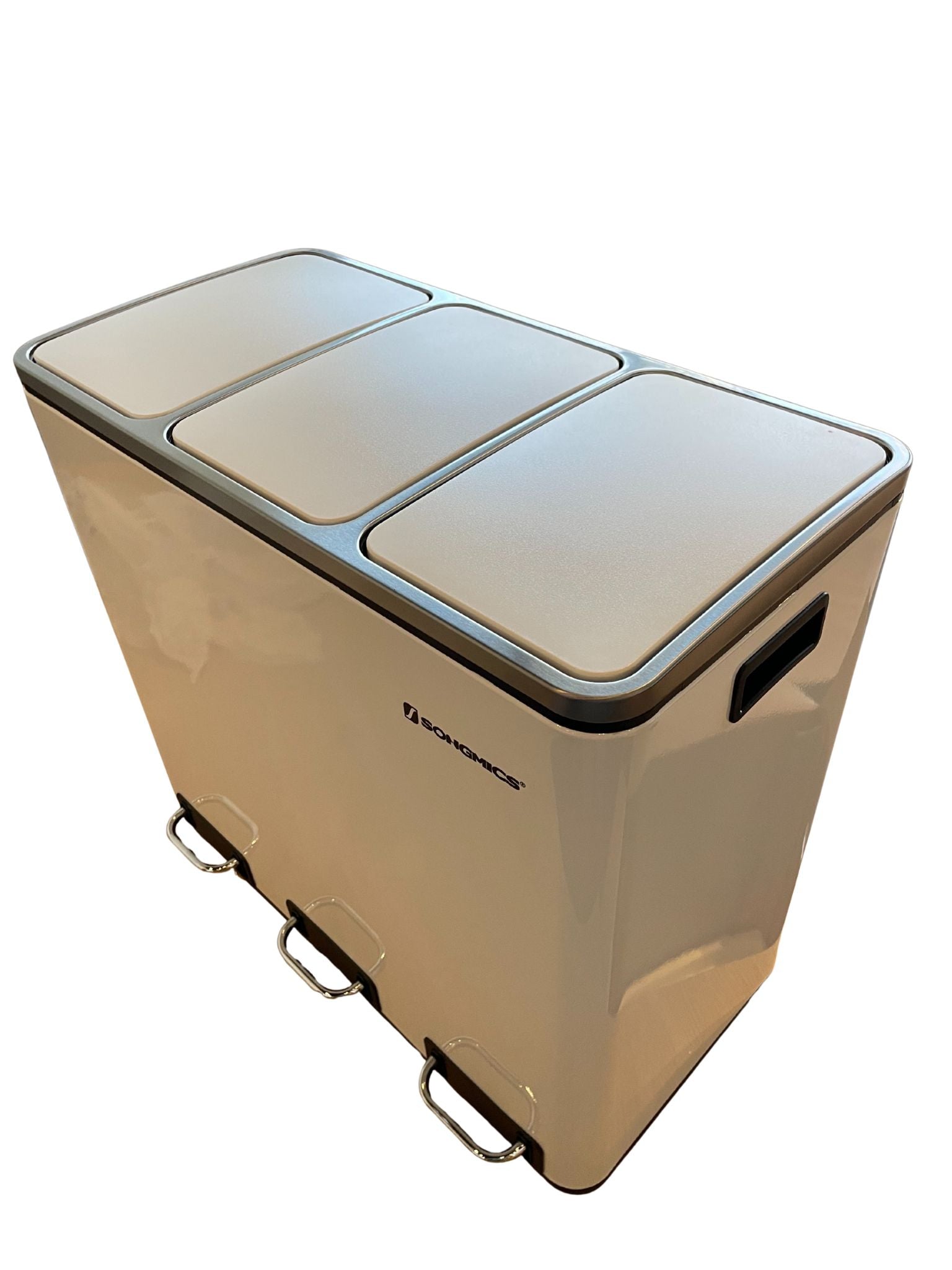Dette smukke stykke er lavet med robust stål samt holdbar ABS plastik og PP plastik inderste beholderkonstruktion, hvilket sikrer, at den holder i ethvert miljø. Dens hvide farve giver den et simpelt rent udseende, hvilket gør, at den passer ubesværet ind i alle omgivelser. Med tre 18 liters aftagelige rum behøver du aldrig at bekymre dig om udtjente beholdere. Fodpedalen er med til at gøre livet nemt og rodfrit, så du nemt kan komme af med affaldet.