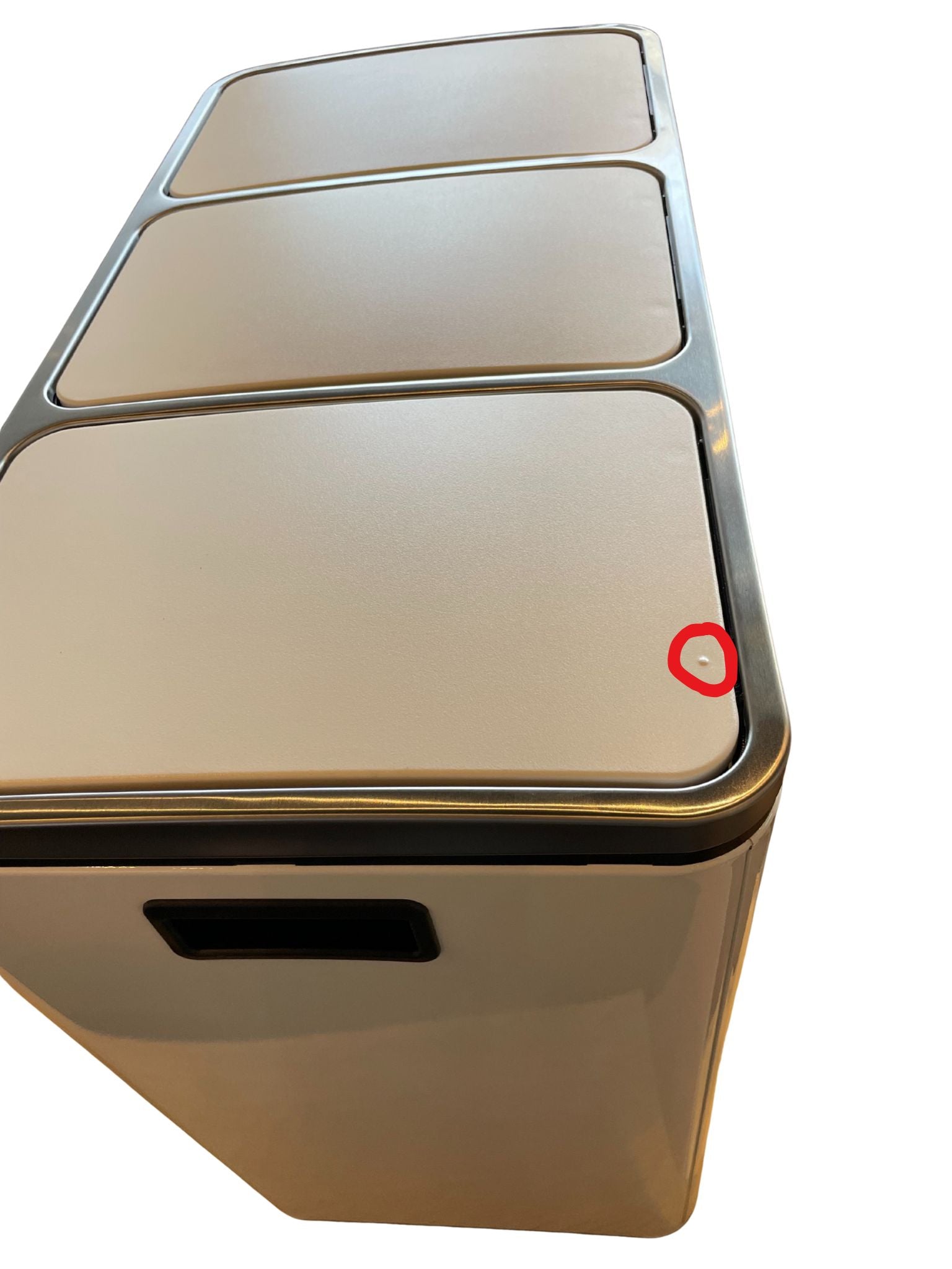 BEMÆRK: Denne skraldespand sælges billigere, da den har en mindre fejl ovenpå det ene låg (se billeder).
