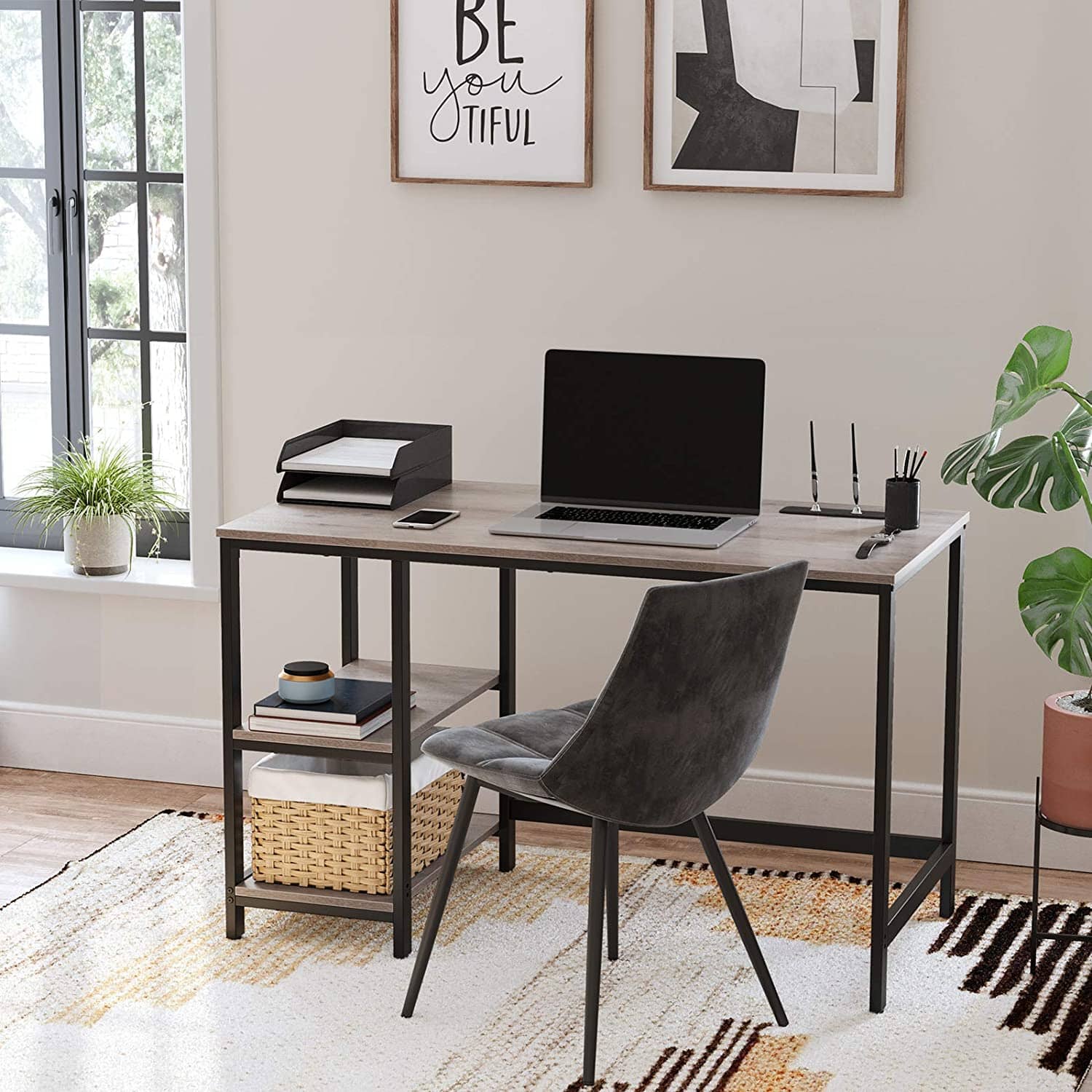 Stor plads til skrivebordet: Det brede skrivebord giver masser af plads til to skærme, tastatur og alle dine kontorforudsætninger - det hjælper dig med at forblive produktiv, når du arbejder hjemmefra.