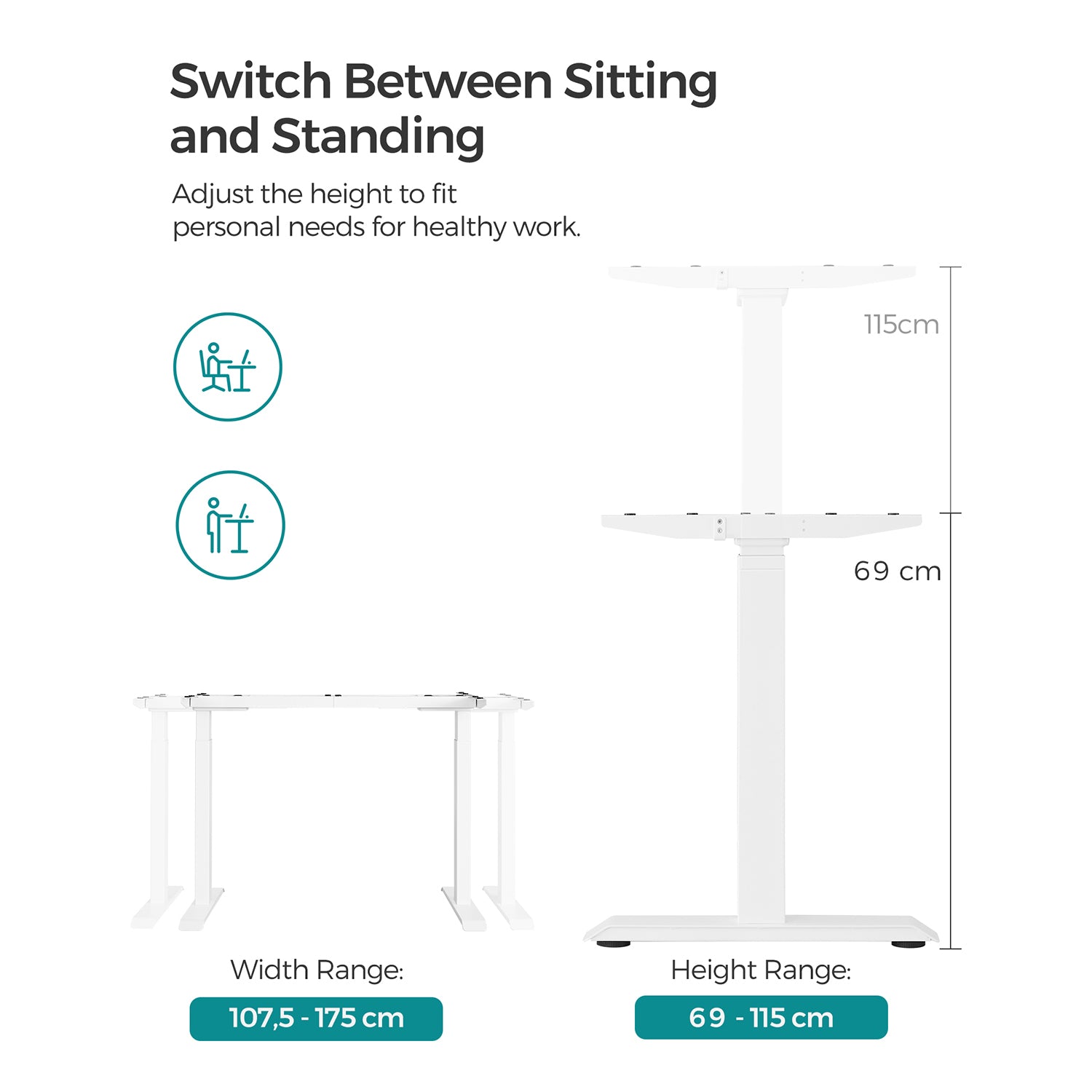 Få det bedste ud af din arbejdsdag med dette højdejusterbare skrivebord. Med justerbare højder fra 69 til 115 cm kan du tilpasse din arbejdsstilling til både siddende og stående stilling og finde den ideelle ergonomiske position for maksimal komfort.