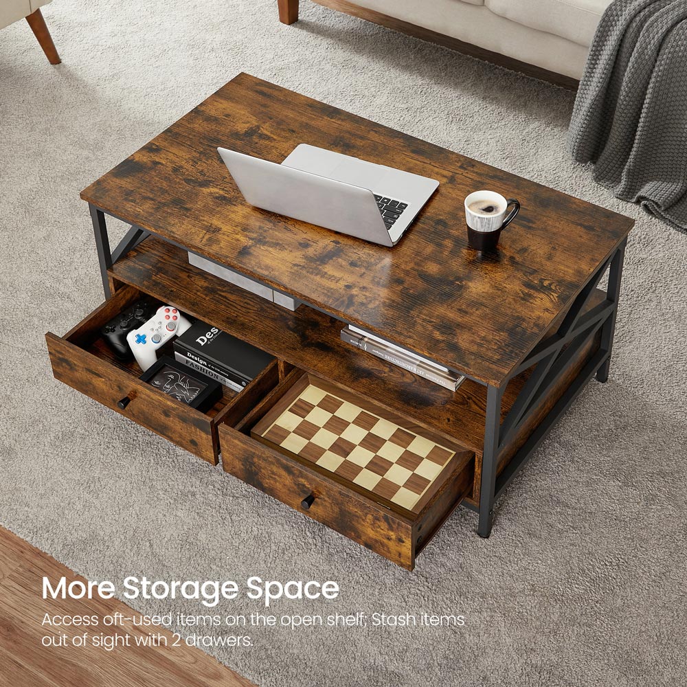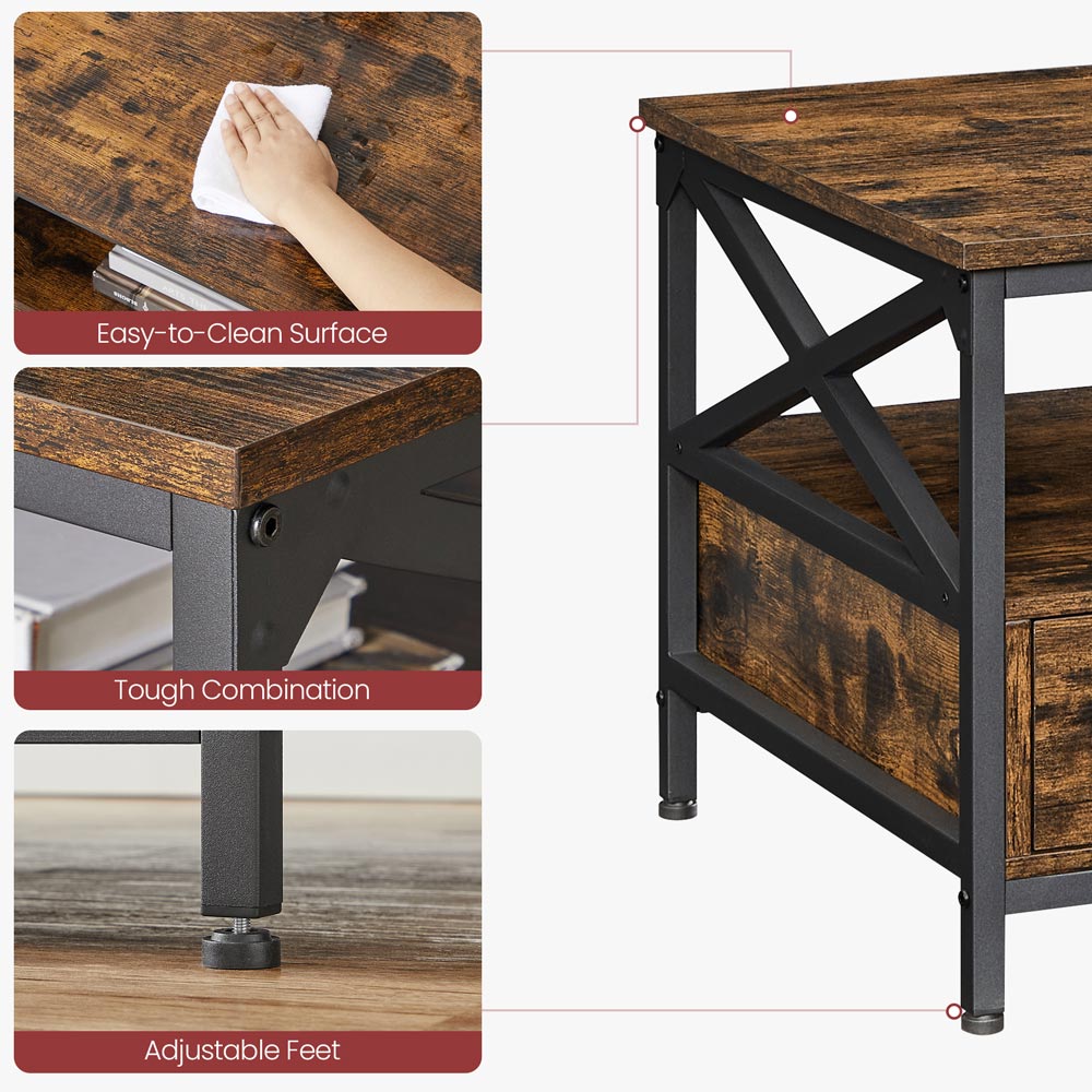 Hvad du får: Et sofabord med en industriel stil for at tilføje et personligt touch til din stue, mere plads til at opbevare dine ting, justerbare fødder og en nem samleprocess.