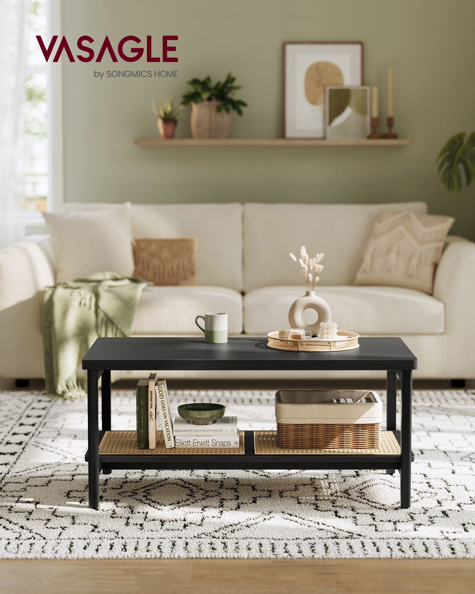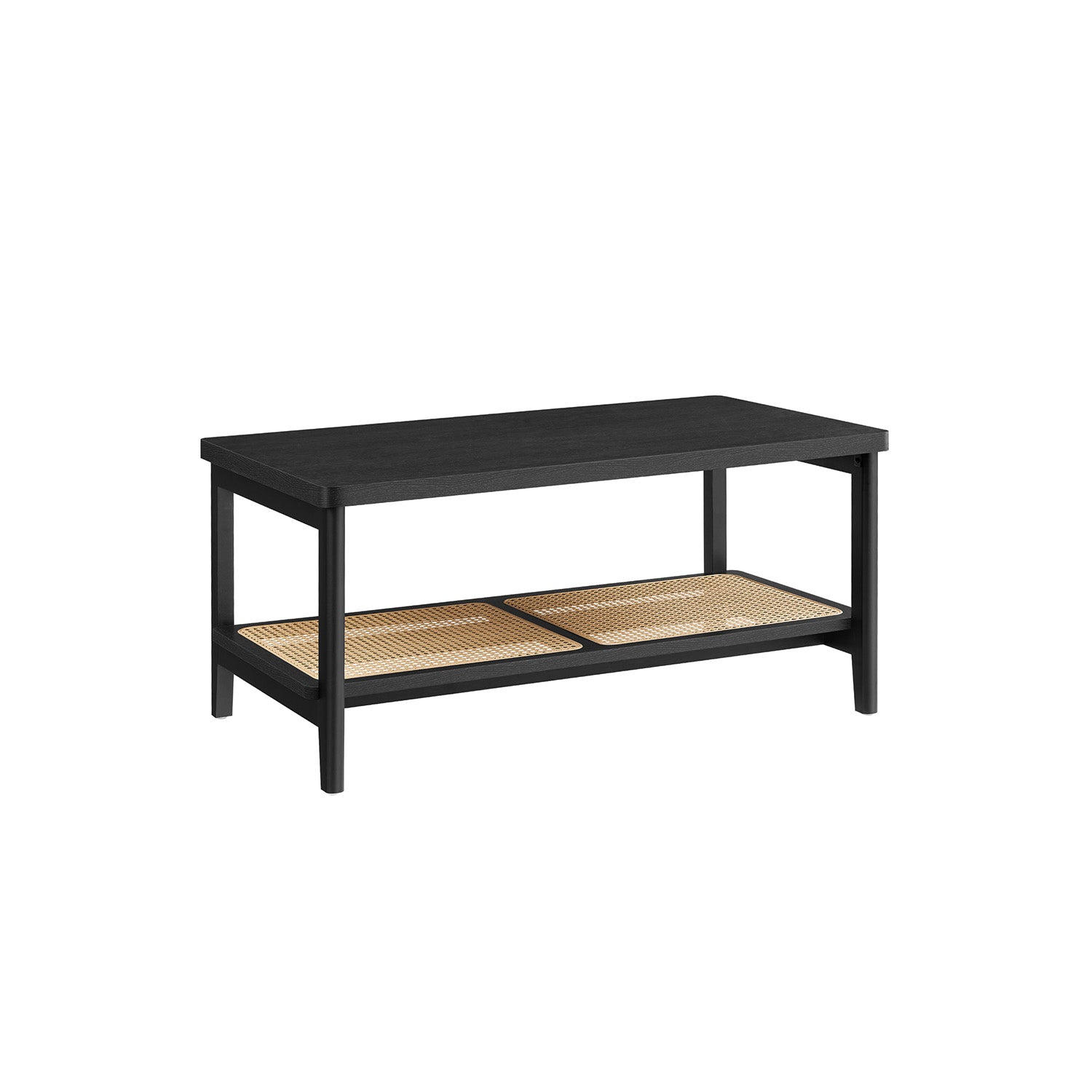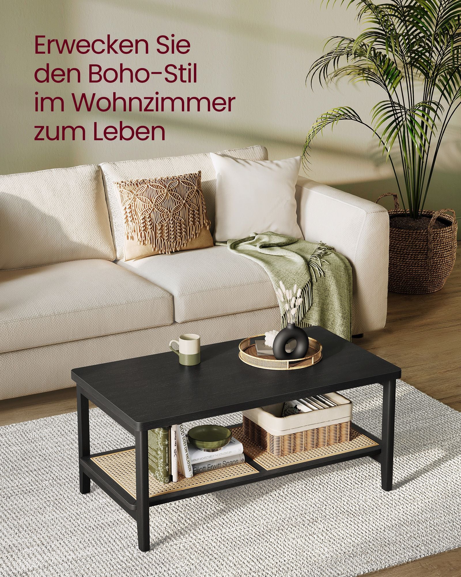 Dette sofabord bringer en sofistikeret boho charme til dit hjem med sin elegante sorte nuance og det PVC-rattanbakke, der tilføjer en unik tekstur. Kombinationen af naturlige elementer med en moderne finish skaber en perfekt balance, der passer til enhver stil og gør dit hjem endnu mere indbydende.