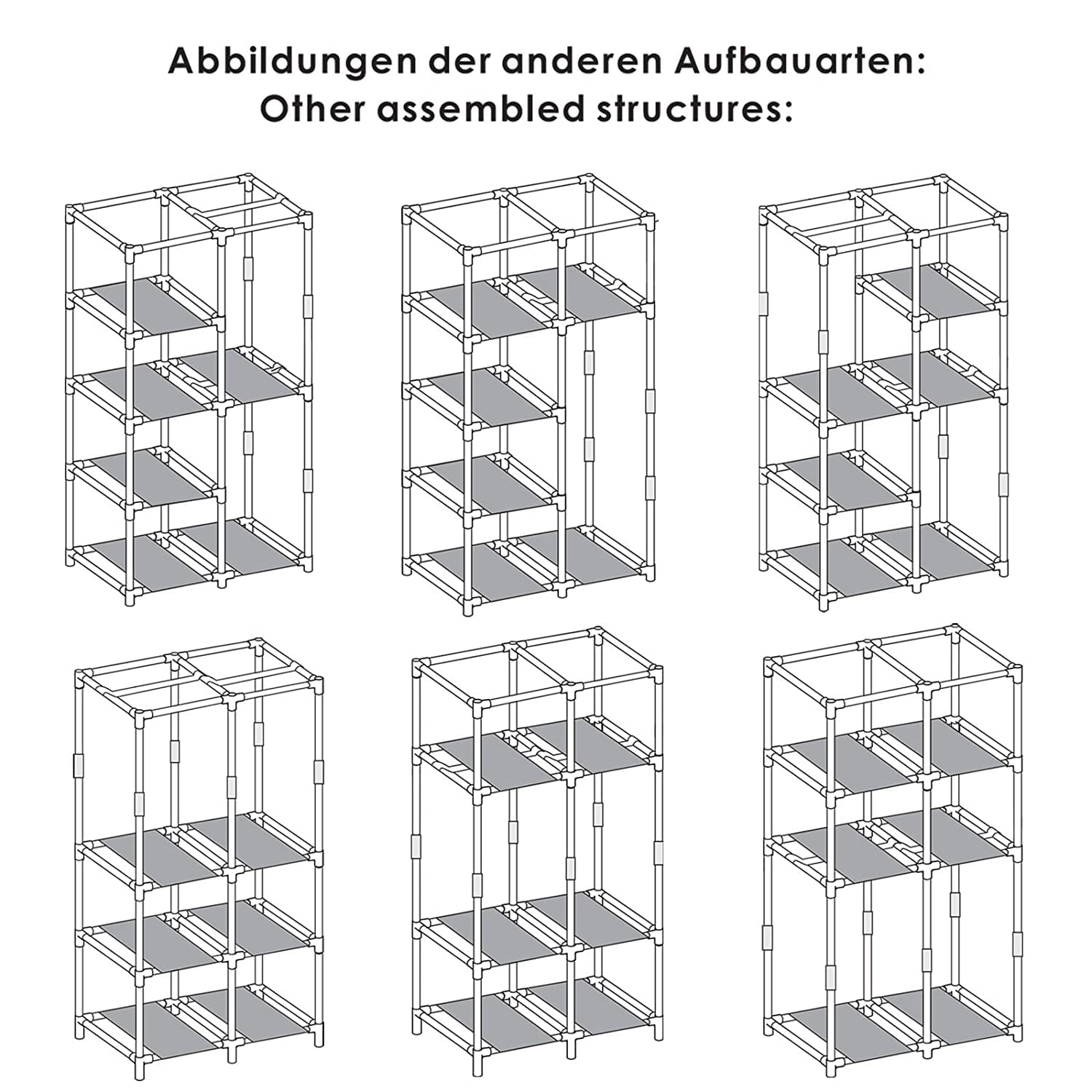 DIT SKABERUM, DIN VEJ: Vær kreativ og vælg mellem 7 forskellige opsætningsmuligheder! Har du hængeskinnen til venstre eller højre? Sæt hylderne højt eller lavt? Du har fuld kontrol over at personliggøre din garderobe, som du ønsker det.