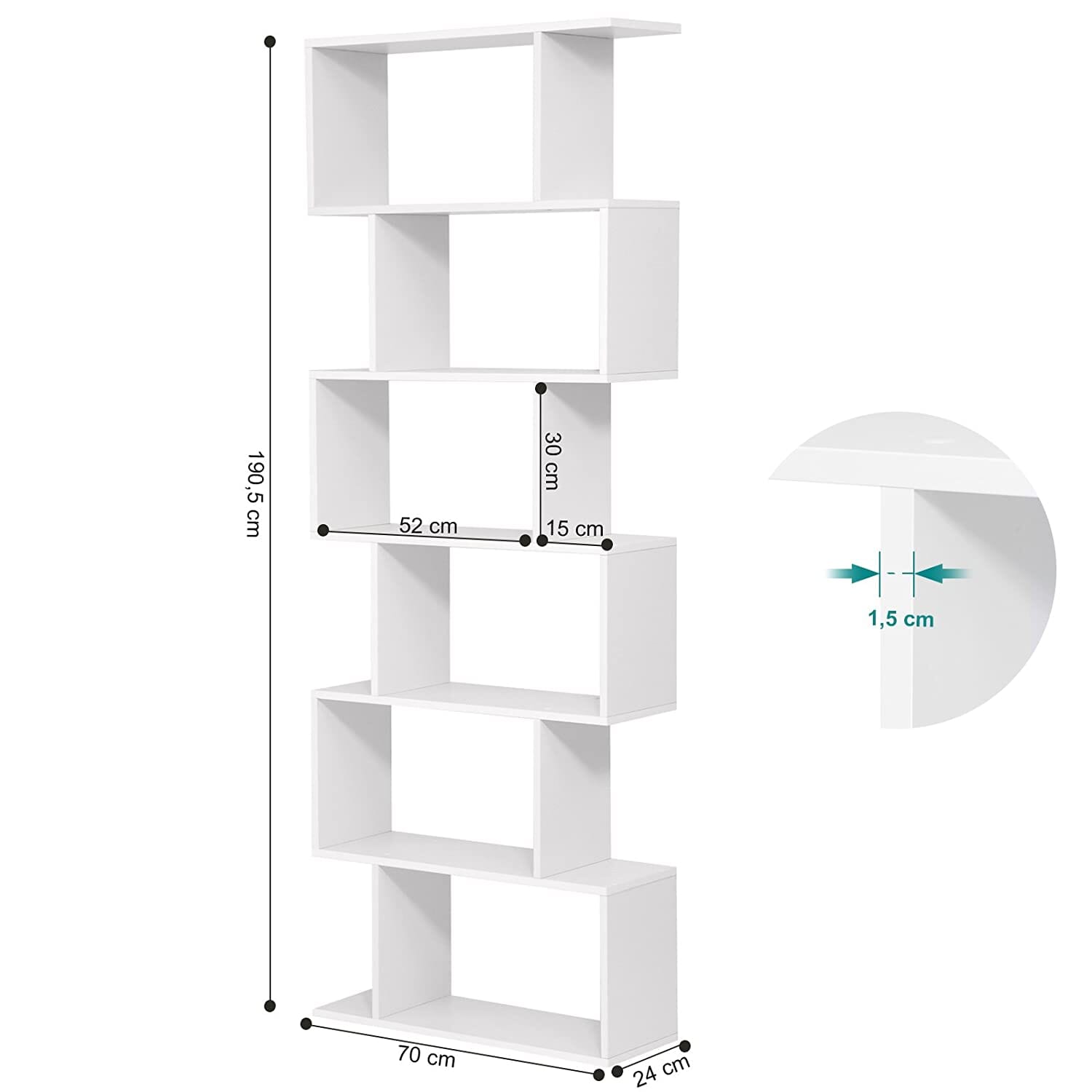 Holder i årevis: Denne gulvstående bogreol måler 70 x 24 x 190,5 cm (B x D x H) og har en vægtbelastningskapacitet på 15 kg per rektangulær terning, hvilket garanterer langvarig brug og kvalitet.