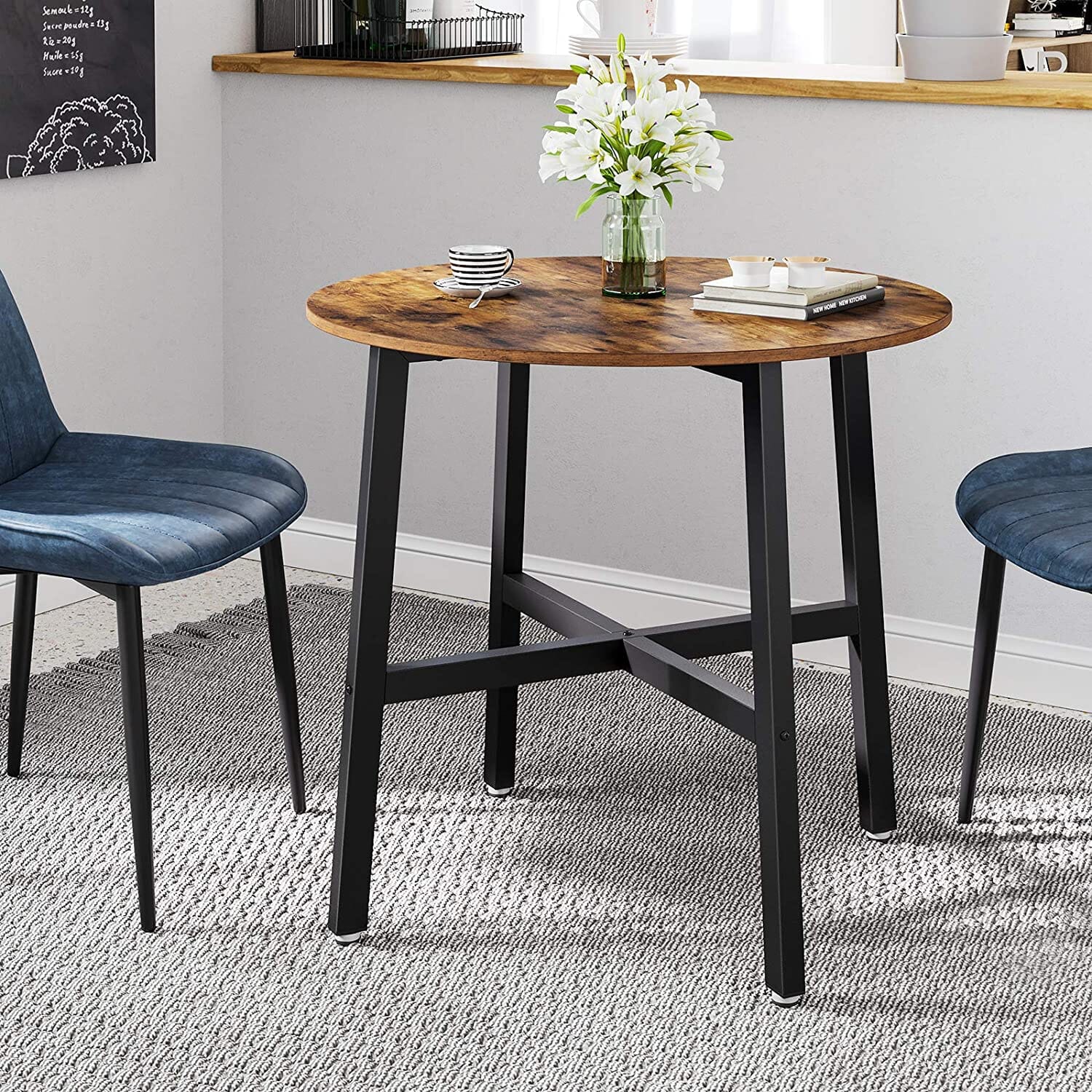 Kokkens forslag: Skab et sprødt køkken i industriel stil med dette runde bord! Med et luftigt sort stålstel og et fint bordpladepanel er det perfekt til måltider med venner og familie.