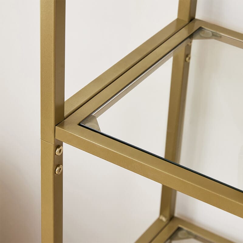 Unikt design - Denne moderne Bruxelles-bogreol tilføjer stilfuld elegance til ethvert rum. Dens slanke glas- og metalstruktur giver dig mulighed for at udstille din boligindretning med lethed, samtidig med at den gør et varigt indtryk på gæsterne!
