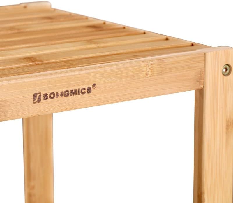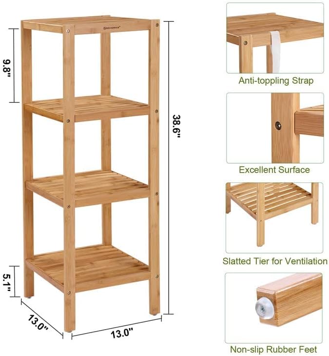 Denne reol i 100% naturlig bambus er ideel til opbevaring af badeværelsesartikler, planter, bøger, krydderier og småting. Dens kompakte design passer perfekt i både små og store rum.