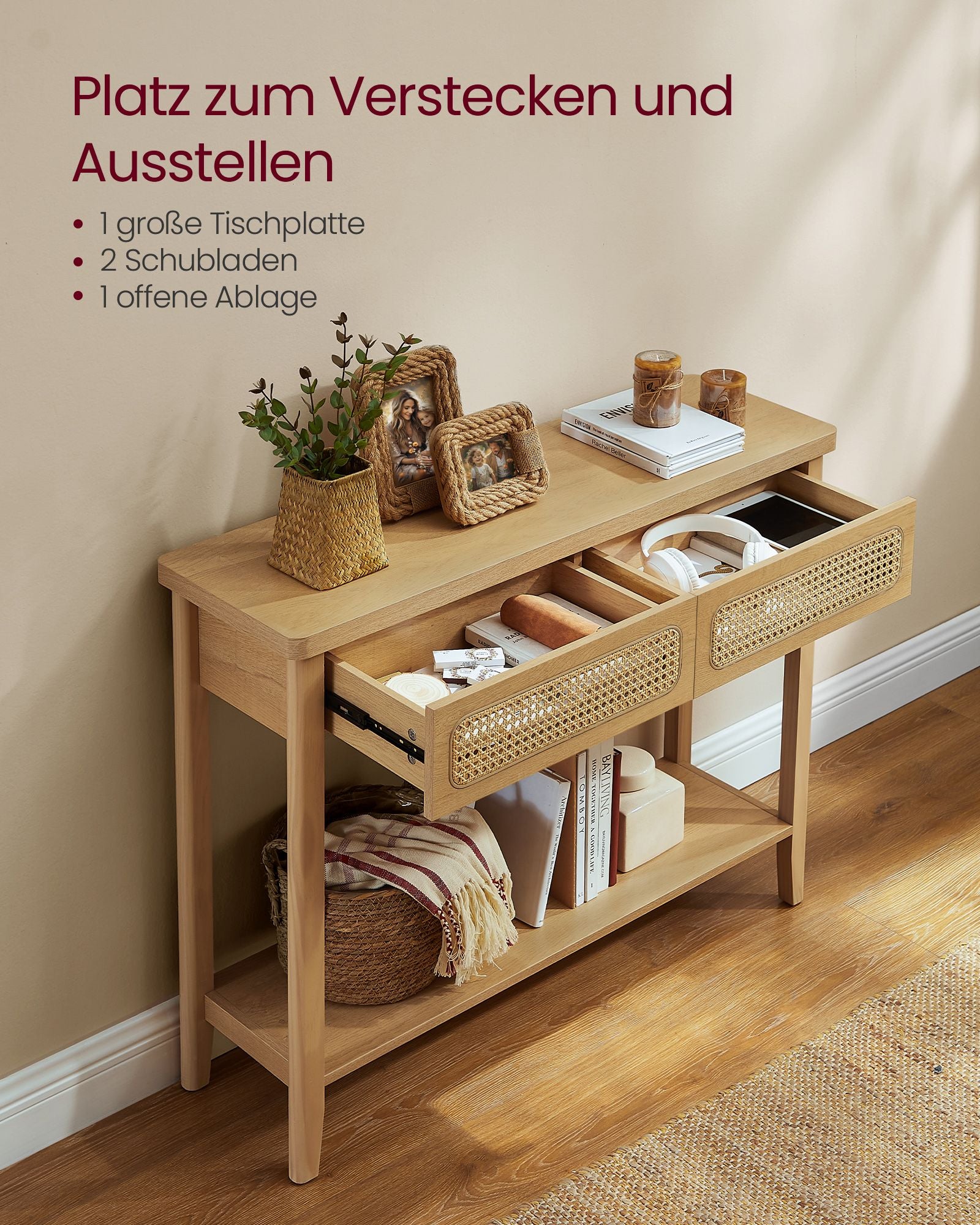 Masser af Opbevaring – Praktisk og Organiseret Konsolbord