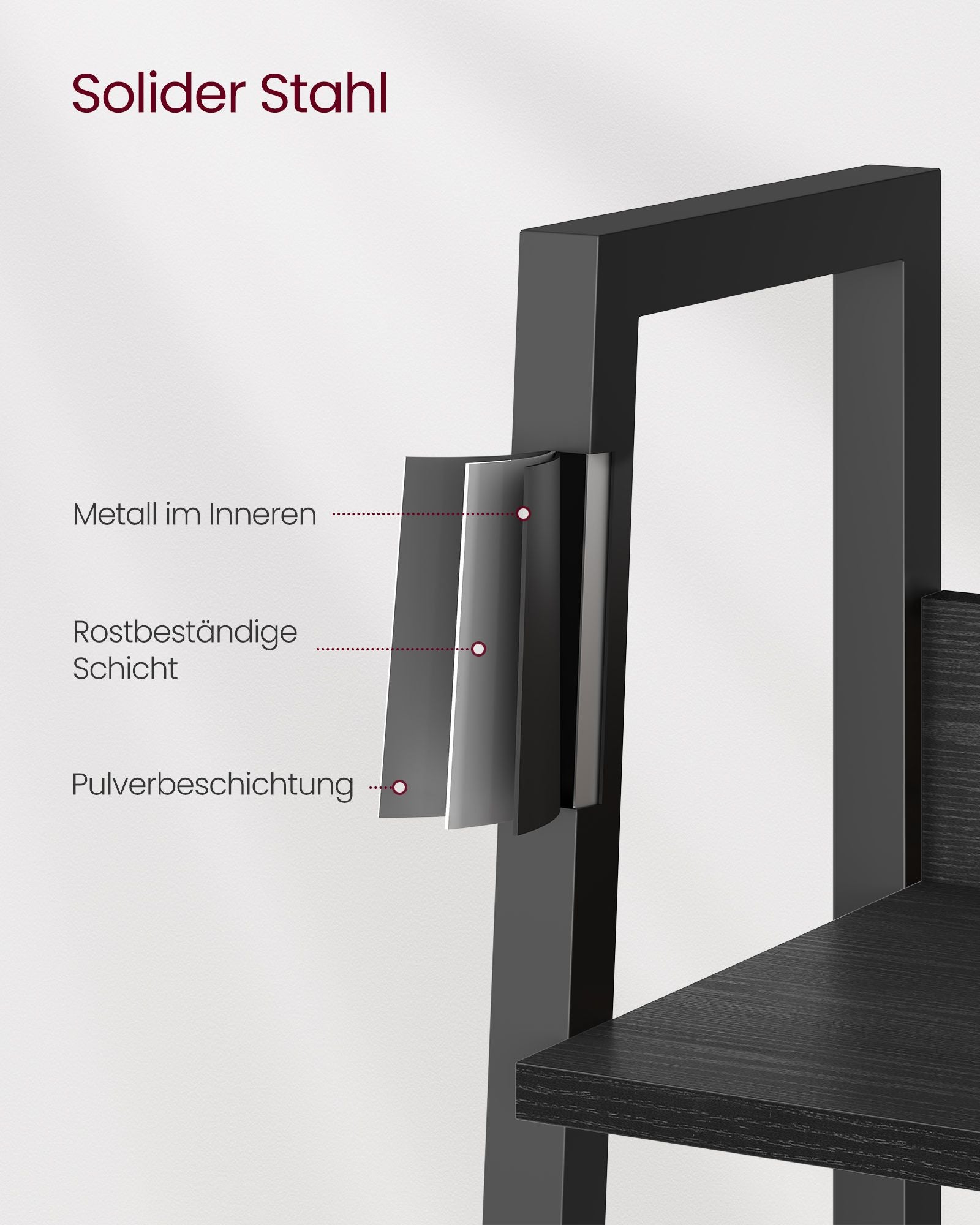 Denne reol er fremstillet af stærkt stål og høj kvalitet spånplade, hvilket gør den yderst holdbar. Med en maksimal vægtkapacitet på 75 kg kan den bære tunge bøger, samlinger og meget mere. Dette er en reol, der er bygget til at holde i mange år og vil fortsat levere pålidelig opbevaring og støtte.
