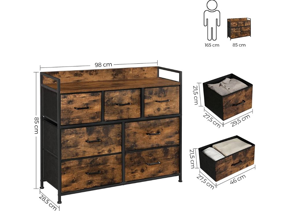 Til din rådighed: Flyt kommoden nemt rundt med dens metal håndtag i toppen. Opbevar tøj i hver af de 3 små og 4 store skuffer, som er designet til sortering, og få hurtigt adgang til dem med træk i polyesterplast.