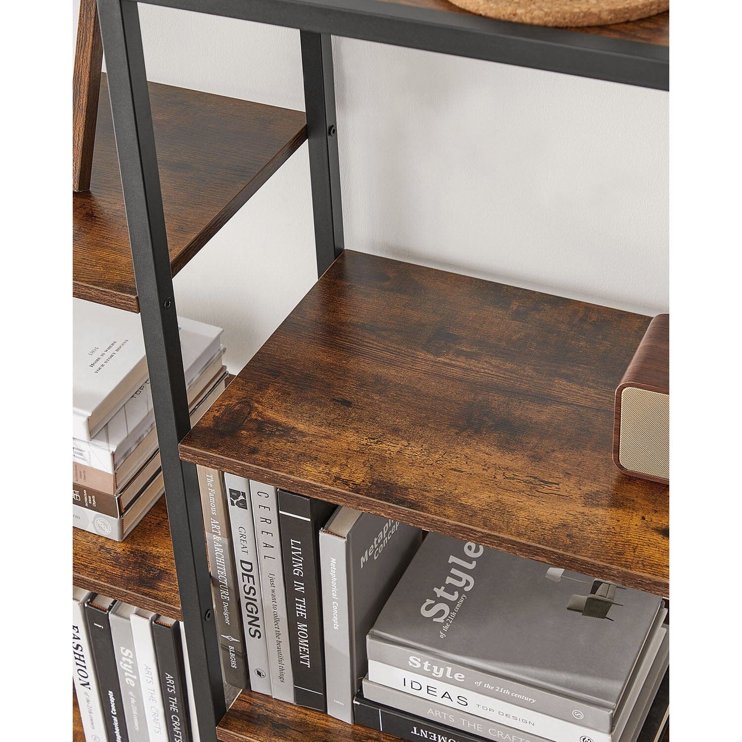 Stabilt blikfang: Med en robust sort stålramme, rustikke brune spånplader af høj kvalitet og X-formede stænger på bagsiden er denne stilfulde reol meget stabil og ser også godt ud.