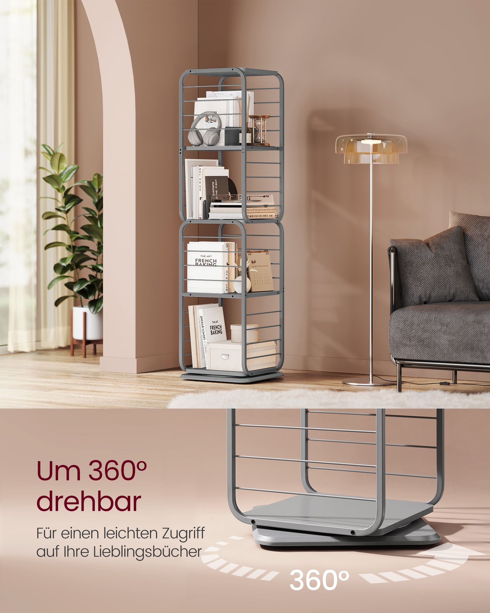 Denne reol er ikke kun smuk, men også stabil og sikker. De justerbare ben sikrer balance på ujævne overflader, mens anti-tip kittet forhindrer reolen i at vælte. Bagpanelerne holder dine ting sikkert på plads, så du kan opbevare dine ejendele med ro i sindet.