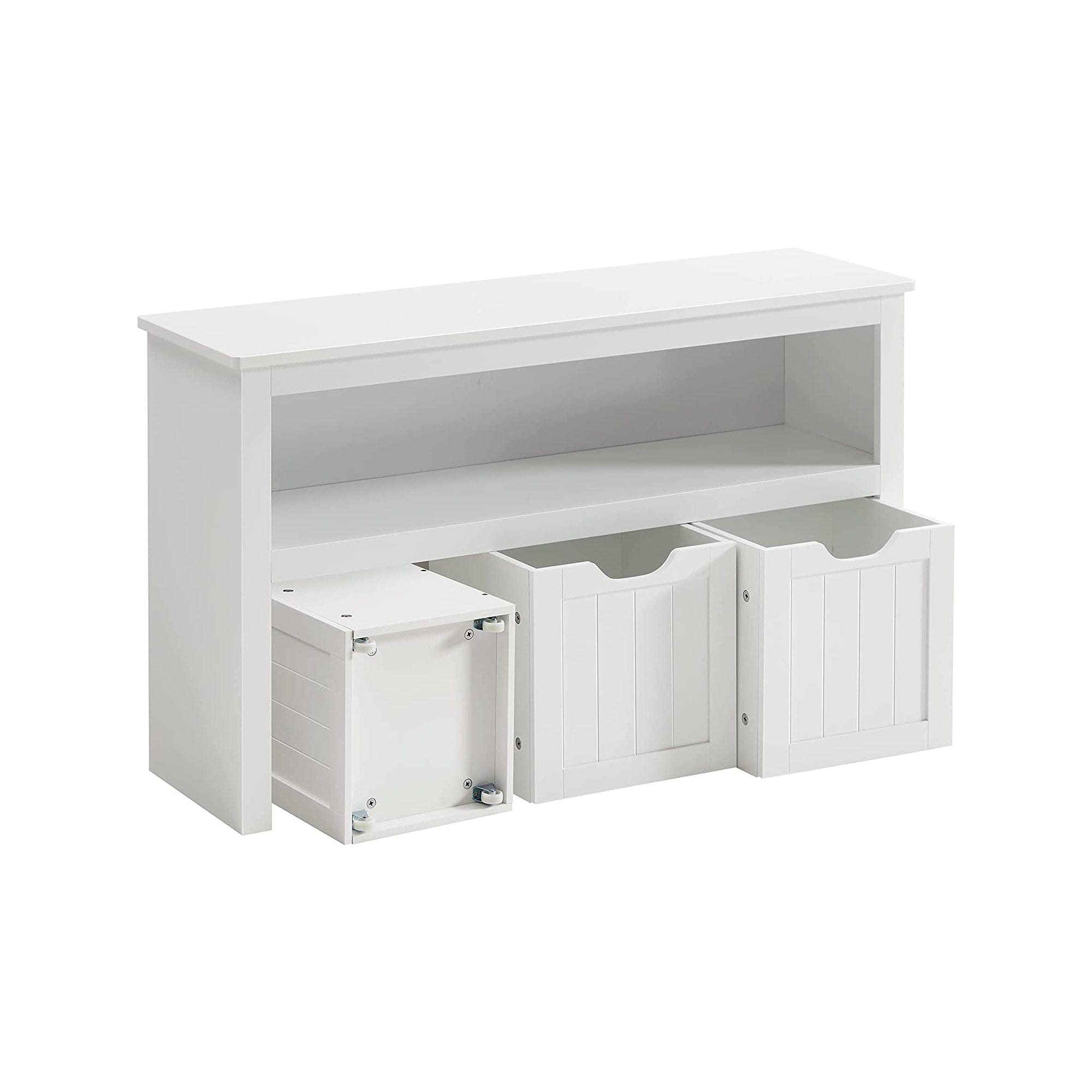 Børnevenligt design - Med 3 praktiske kasser på hjul og udskæringer, der forhindrer små hænder i at komme i klemme, er denne kommode let tilgængelig for børn i alle aldre. Desuden kan selv de mindste børn med sin højde på 60 cm finde deres yndlingslegetøj.