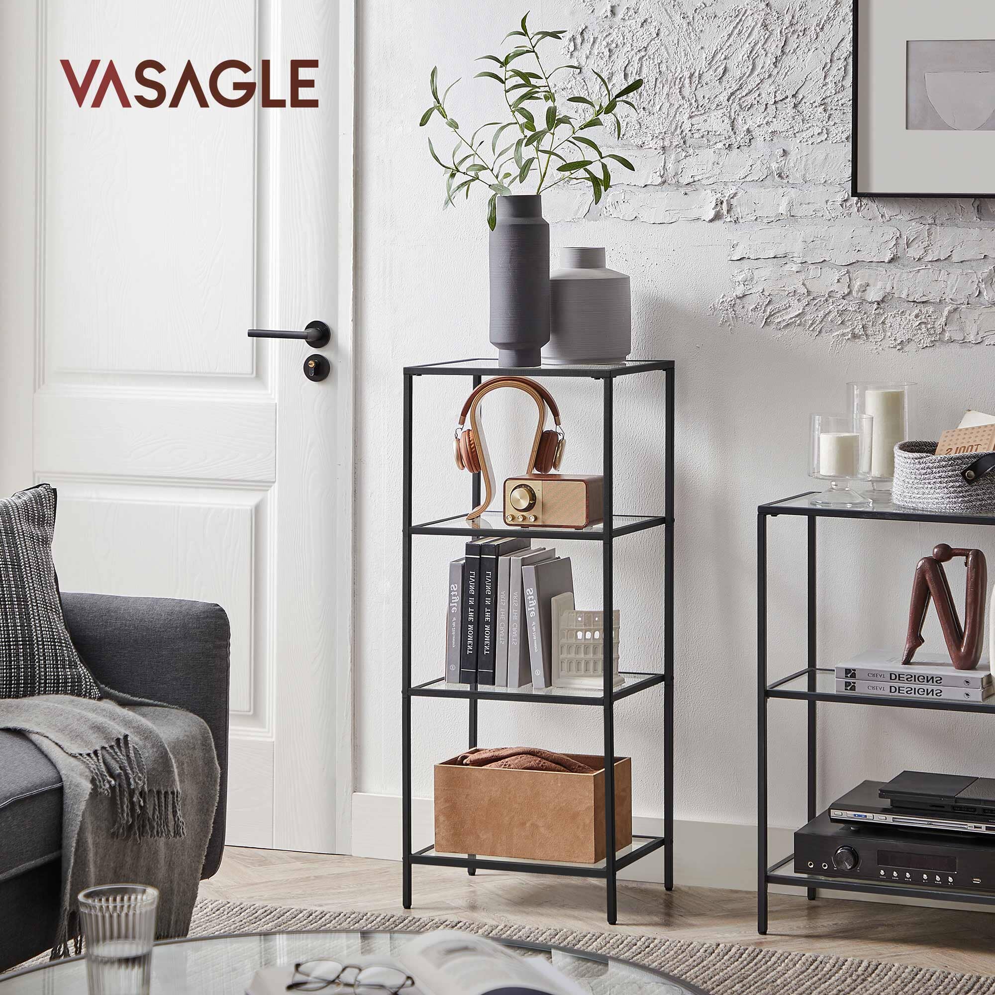 Enkel, stilfuld og praktisk - Denne hylde med 4 niveauer er den perfekte måde at tilføje stil og funktion til ethvert rum. Det rene, moderne look med sort svaber vil give et minimalistisk touch til din indretning.