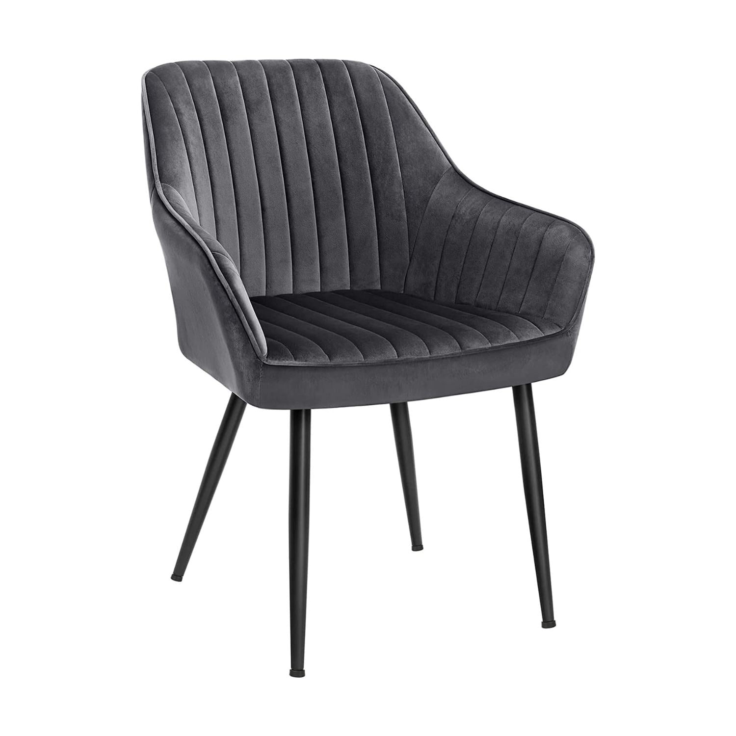 Hvis komfort havde et design, ville det være denne spisebordsstol! Den glatte velvet-belægning føles vidunderligt mod huden, og de quiltede striber tilføjer et unikt præg til dit hjem. De let skrånende sorte metalben giver et strejf af glamour, som gør stolen til et iøjnefaldende element i ethvert rum.
