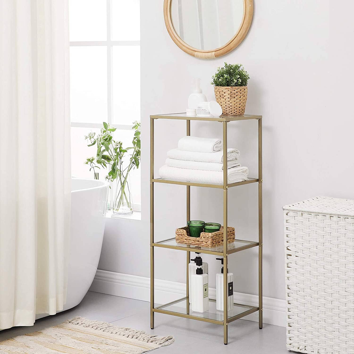 Minimalistisk tone - Denne hylde med 4 etager har et strømlinet look med en gylden nuance som prikken over i'et. Perfekt til at sætte en minimalistisk tone i ethvert rum.