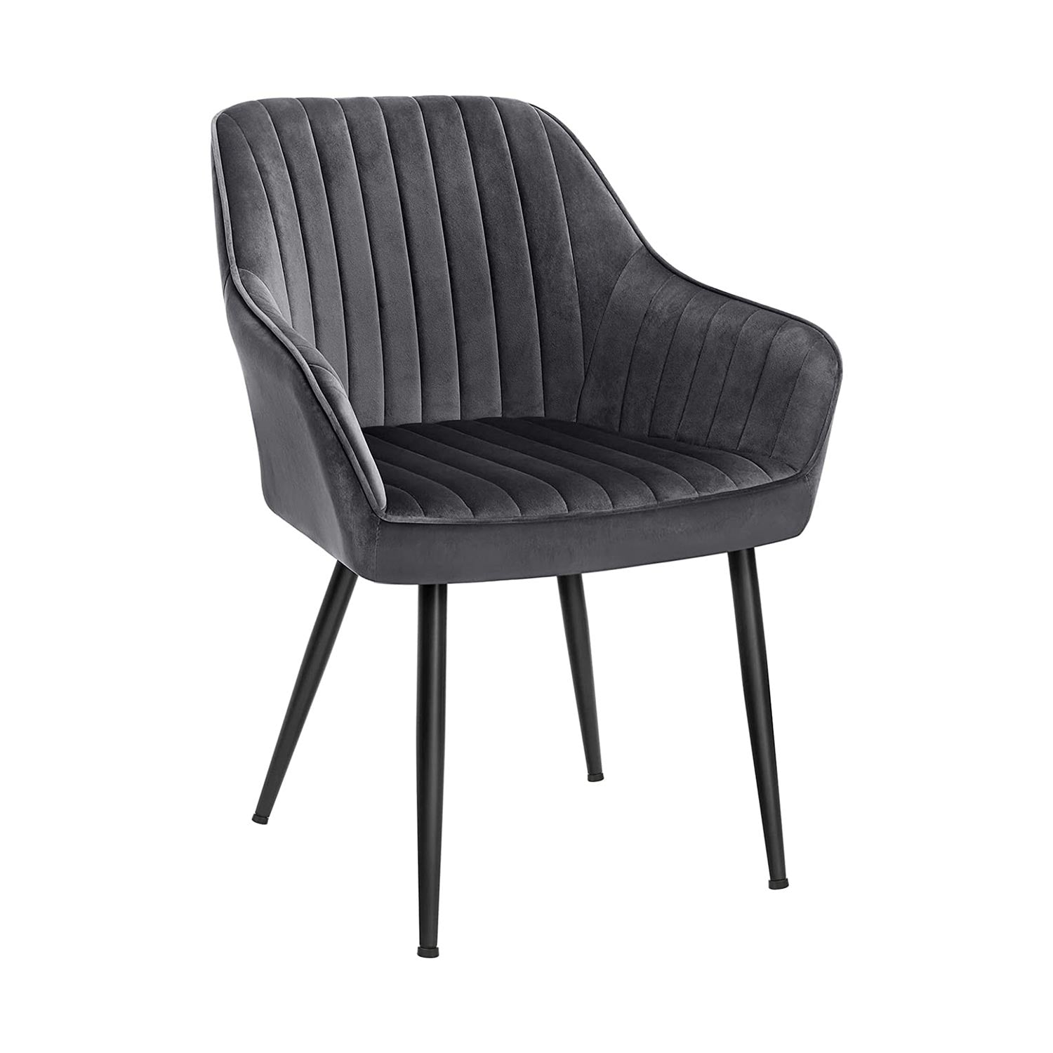 Forestil dig komfort, der også har et fantastisk design. Vores spisebordsstole kommer i en luksuriøs grå velvet, der ikke kun føles vidunderlig mod huden, men også tilføjer et strejf af elegance til dit hjem. De kviltede striber og de let vinklede sorte metalben tilfører glamour og stil, der vil imponere dine gæster og løfte din indretning.