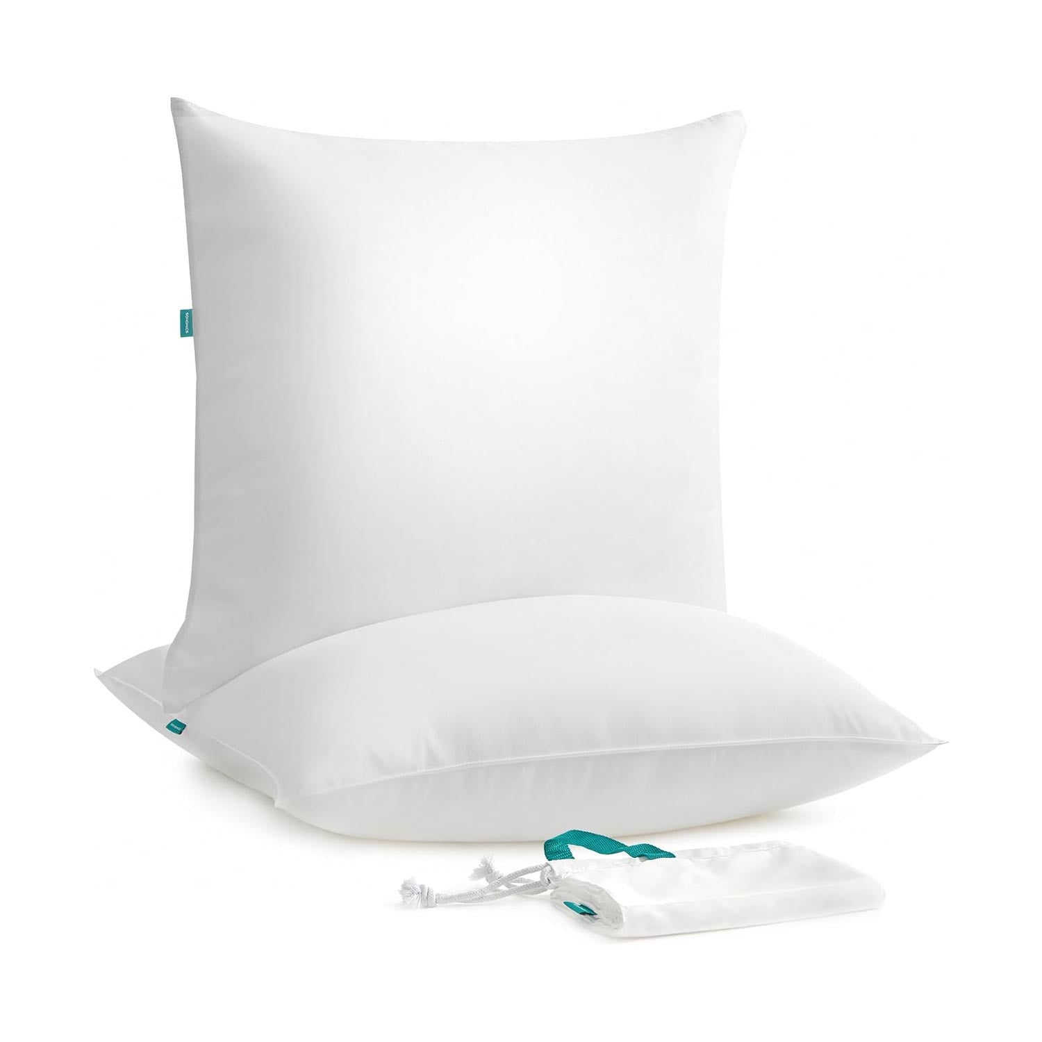 Hver af disse 80 x 80 cm puder leveres med en praktisk opbevaringstaske, hvilket gør det nemt at opbevare dem hjemme eller tage dem med på rejser og campingture. Puderne er desuden designet med dobbeltsyninger, som sikrer langvarig holdbarhed. For ekstra bekvemmelighed kan puderne maskinvaskes ved 60°C, hvilket gør det nemt at holde dem rene og friske uden at gå på kompromis med komforten.