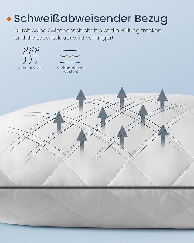 Denne pude er udstyret med et innovativt svedresistent betræk, der forhindrer klumper i puden og forlænger dens levetid. Med et elegant design, der inkluderer diamant-syninger og forstærkede kanter, kombinerer denne pude holdbarhed med stil. Derudover kan den maskinvaskes og tørres ved op til 60°C, hvilket gør det nemt at holde puden ren og frisk, så den altid er klar til at give dig en rolig nattesøvn.