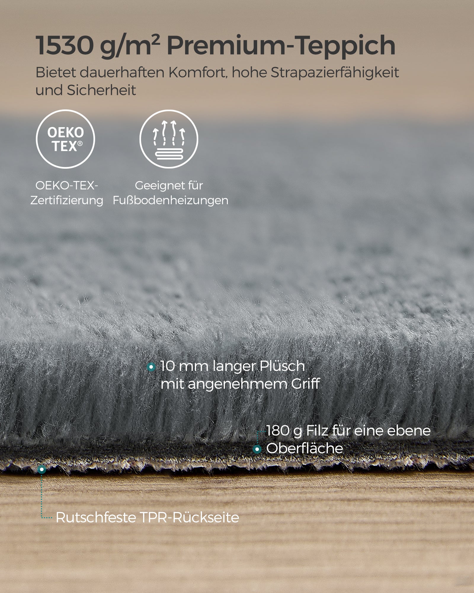 Dette tæppe er fremstillet af 100% polyesterfibre, der giver en uovertruffen blødhed, som gør det behageligt at gå på. Det er OEKO-TEX Standard 100 certificeret, hvilket garanterer, at det overholder de strengeste tekstilsikkerhedsstandarder. Med dette tæppe får du ikke blot et stilfuldt produkt, men også en garanti for høj kvalitet og sikkerhed i dit hjem.