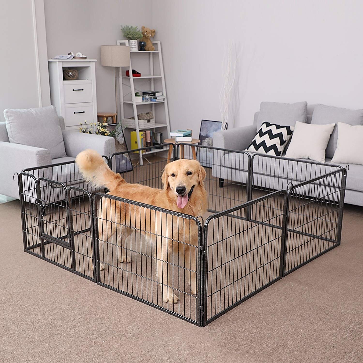 HØJ KVALITET: Dette hegn til kæledyr har en overlegen holdbarhed med sin pulverlakering og fortykkede jernrør. Det har afrundede hjørner og kanter for ekstra sikkerhed.