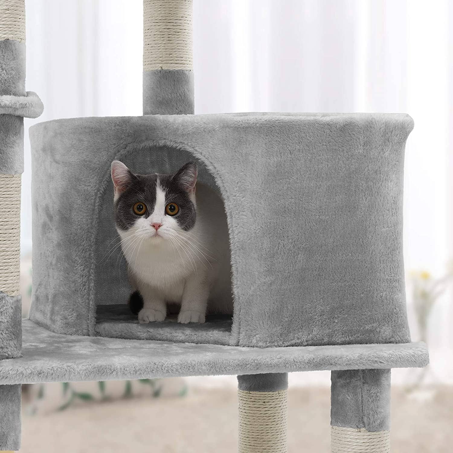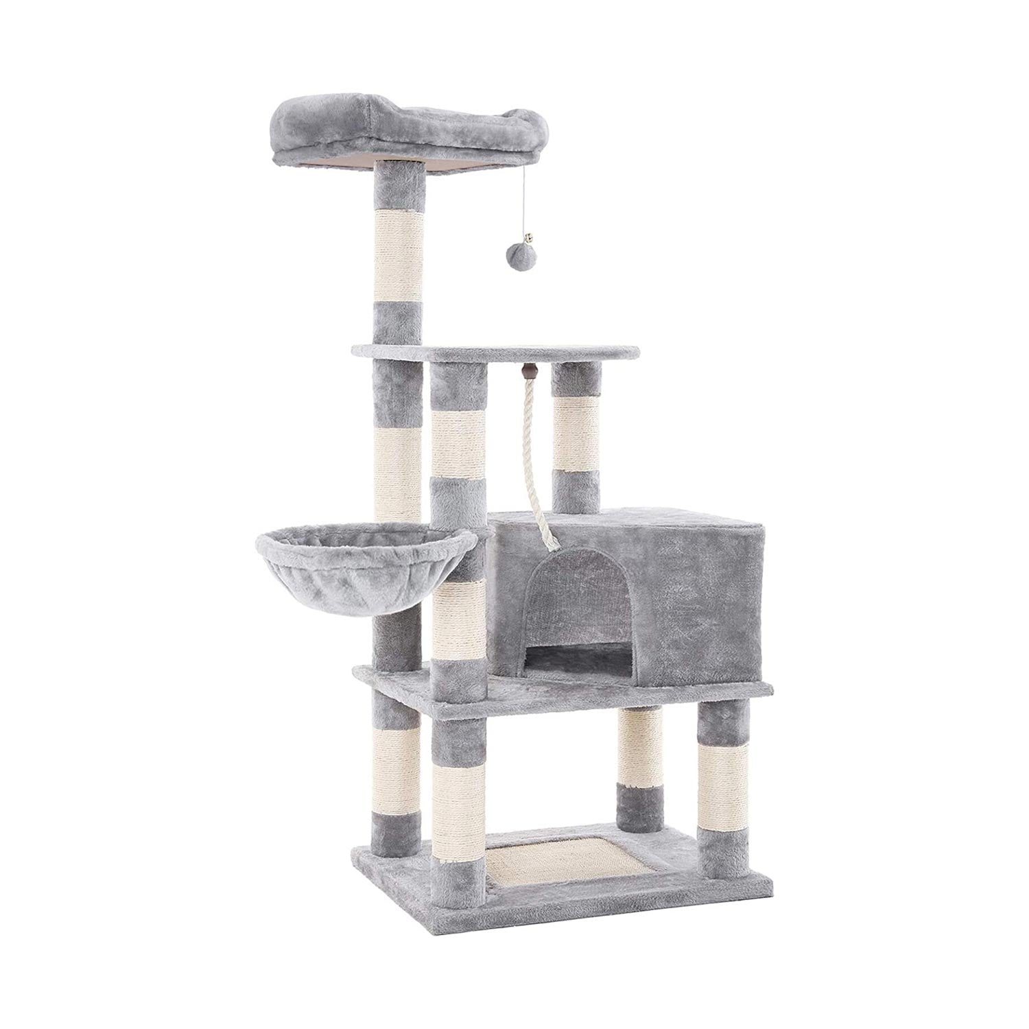 Kan tåle energiske hop og klatringer - Dette kattetræ er designet med en forstærket træbase og et antitip-sæt, så din kattekilling kan hoppe, springe og klatre uden problemer. Det er stærkt nok til at klare flere katte på én gang!