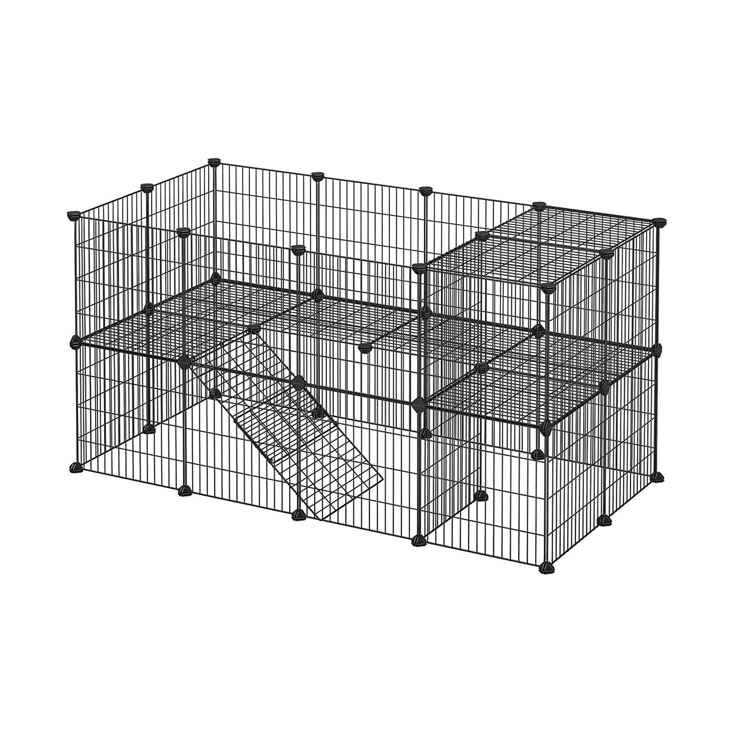 Nem montering: Hurtig opsætning af buret med gitterpaneler, der fastgøres til hinanden med forbindelsesstykker (med skridsikre måtter). Leveres med kabelbindere for ekstra sikkerhed.