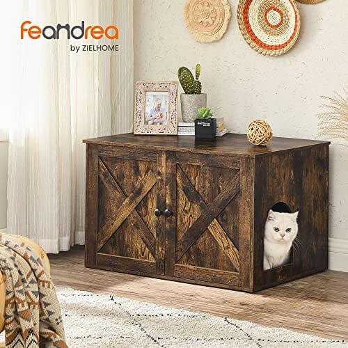 Stilfuld kattebakke - Tilføj et stilfuldt touch til din kats rum med denne rustikke, smarte kattebakke med stalddør. Den passer ind i de fleste boligstile, giver mere privatliv og mindre lugt, og den vil helt sikkert blive en iøjnefaldende tilføjelse til dit hjem.