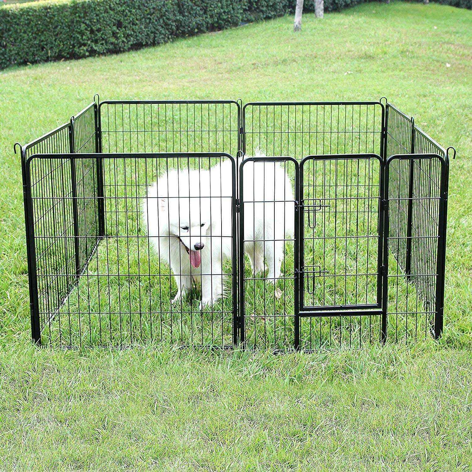 Denne robuste kæledyrsindhegning er skabt til at give dit kæledyr et sikkert område, både indendørs og udendørs. Den holdbare metalstruktur og afrundede hjørner beskytter mod skader, så dit kæledyr kan bevæge sig frit og sikkert.