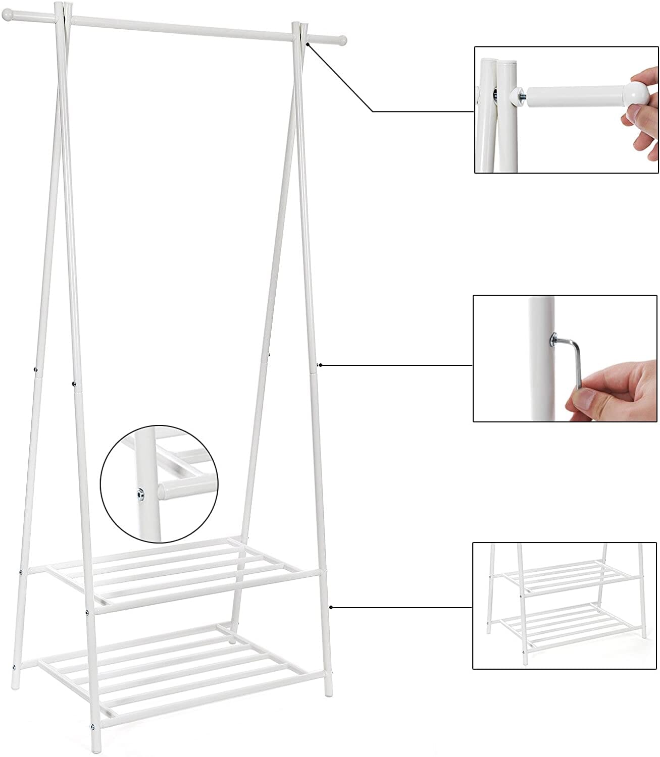 Rigelig kapacitet - Designet med to hylder og en ophængningsstang, har du masser af plads til alt dit tøj! bøjlestangen kan bekvemt holde til op til 20 kg, mens hver hylde også nemt kan holde til 20 kg - perfekt til enhver type tøj.