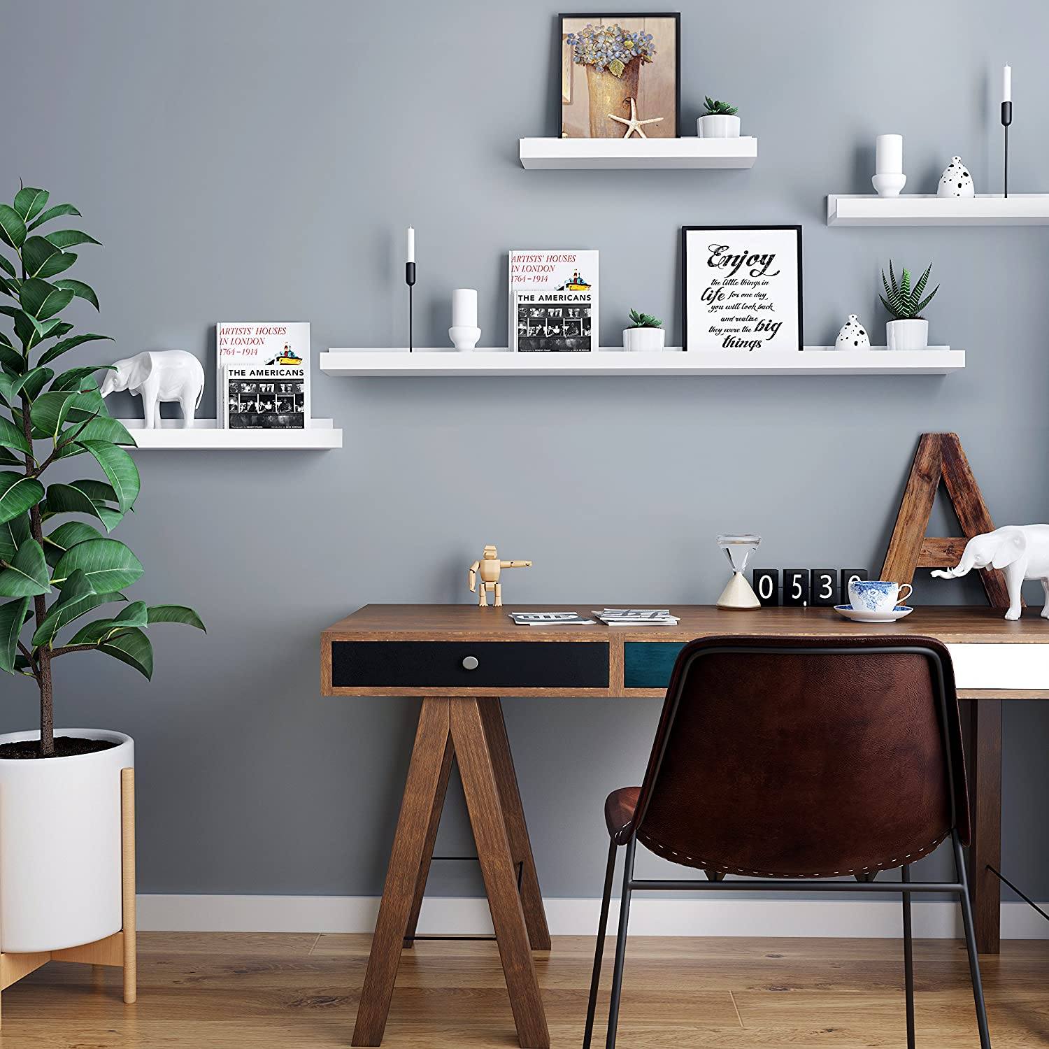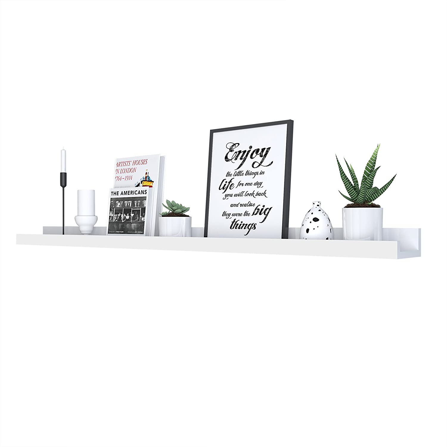 Svævende væghylde: Denne svævende væghylde er perfekt til at vise dine yndlingsøjeblikke frem. Den slanke kant holder billederne oprejst og stabile, så de aldrig glider ud af deres plads. Denne hylde er fremstillet af kvalitetstræ for ekstra holdbarhed og styrke og kan holde til op til 10 kg!