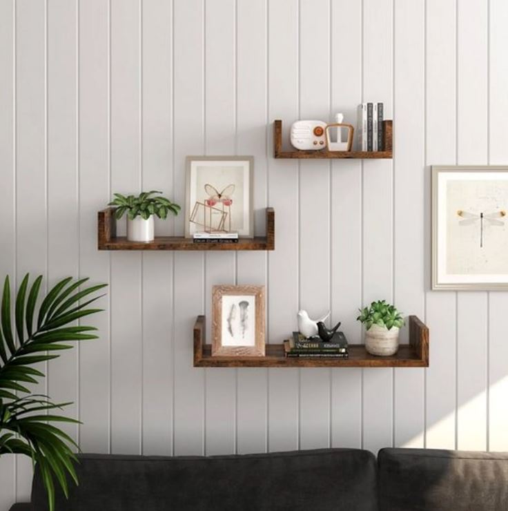 Masser af opbevaringsplads - Hver hylde kan holde op til 15 kg, når den er monteret på en massiv væg, og 3 kg/ 4 kg/ 5 kg, hvis den er monteret på en tør væg, som f.eks. gipsvæg eller gips. Perfekt til opbevaring af bøger, planter eller måske endda dine yndlingsindretningsgenstande.
