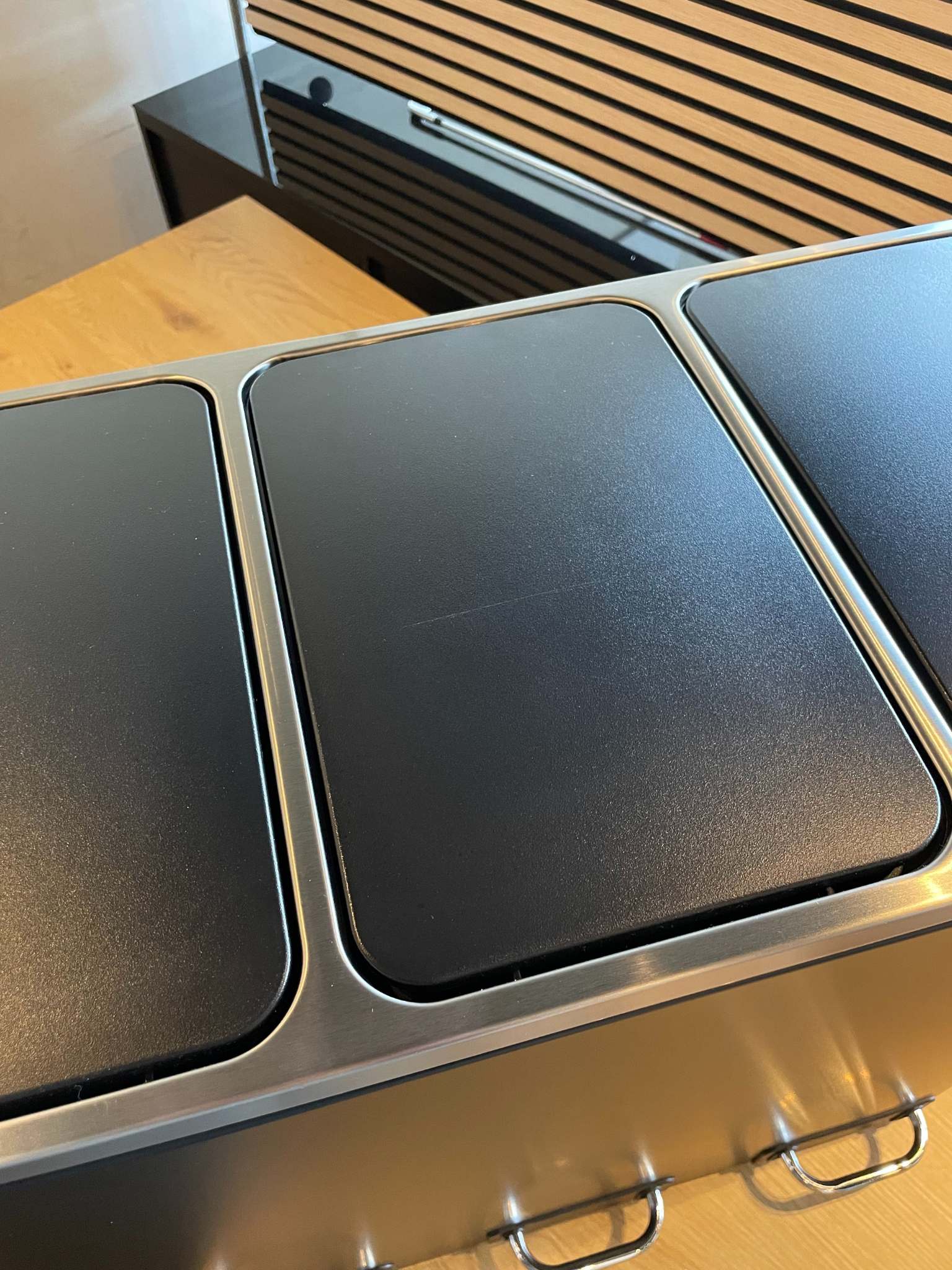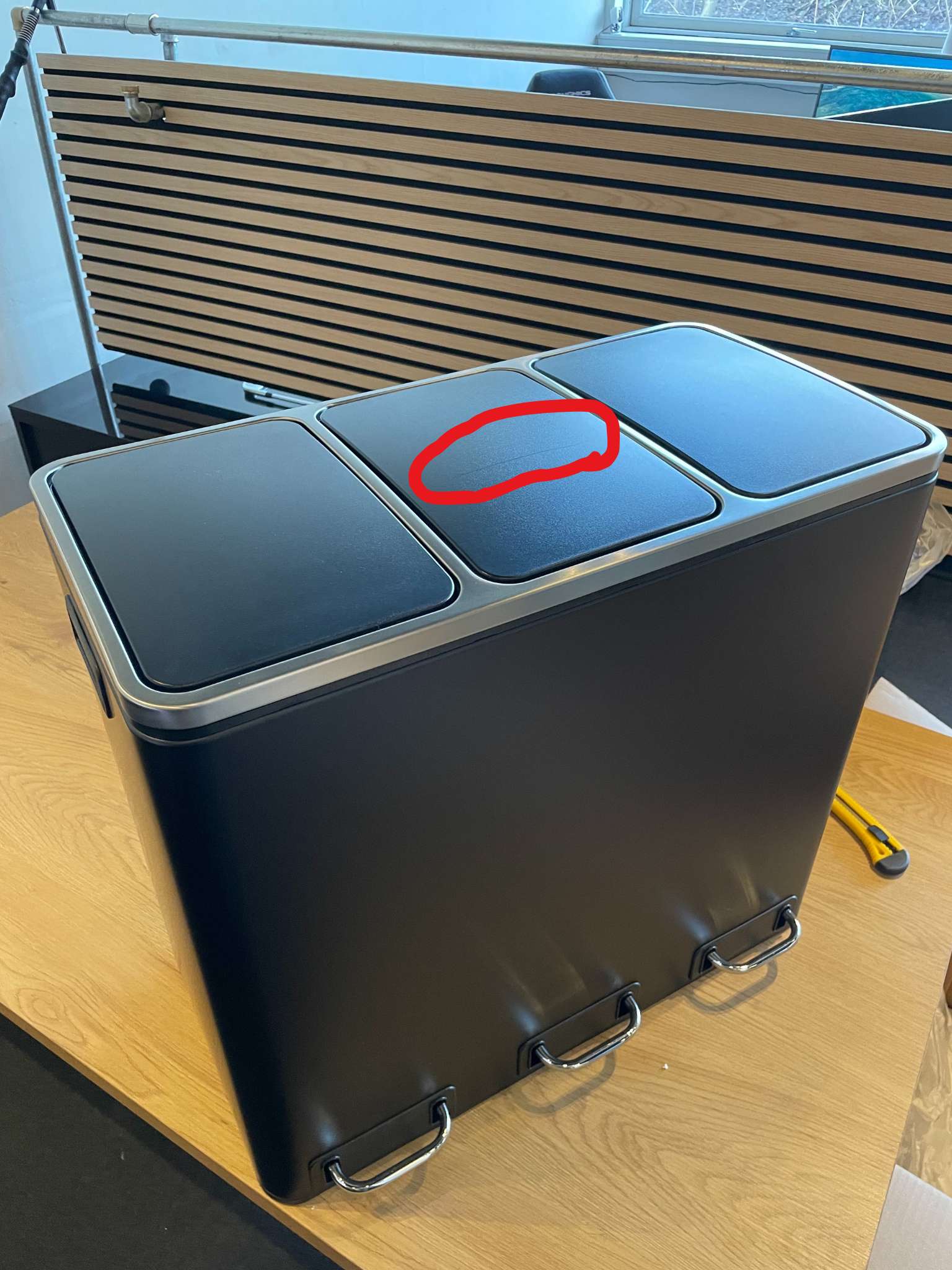 BEMÆRK: Denne skraldespand sælges billigere, da den har én rids på midterste låg. (Se produktbilleder)