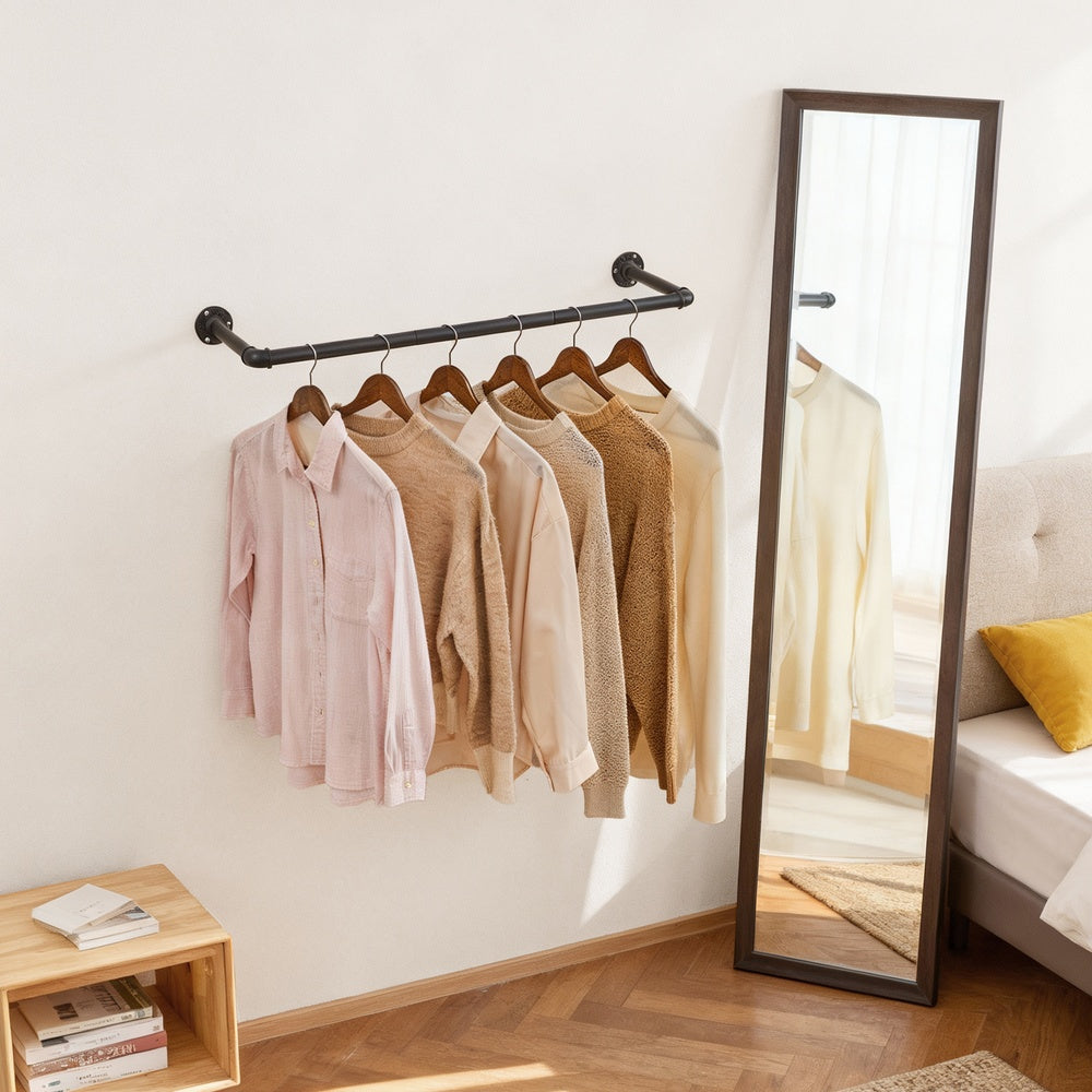No Flimsy Pieces: Each rail can hold up to 60 kg when mounted on solid brick or concrete walls, and 45 kg on wooden walls. Feel free to hang heavy clothes! Simply connect the pipes and mount the rail on the wall