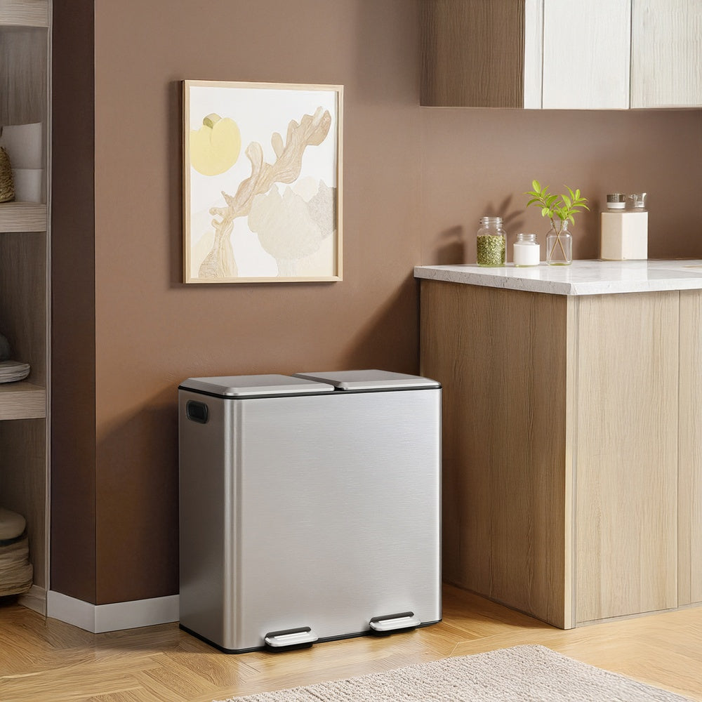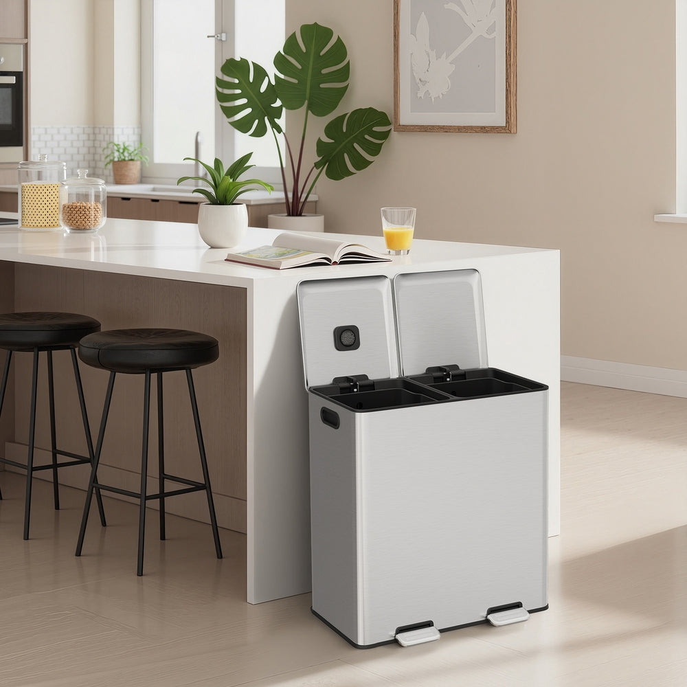 Pedalerne gør det muligt at åbne spanden uden hænder, mens de blødt lukkende låg sørger for stille brug uden høje smæk. Indbyggede duftkapsler hjælper med at neutralisere ubehagelige lugte.