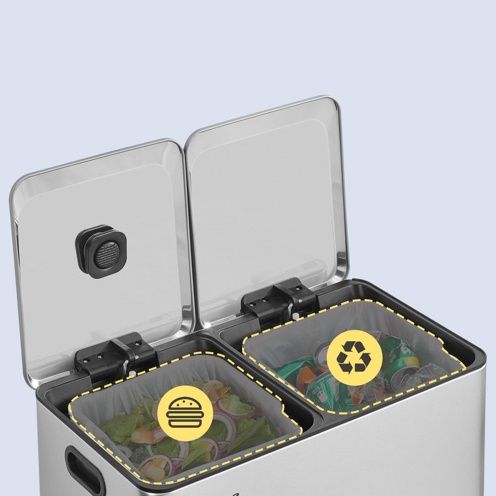 De to indvendige spande på hver 30 liter gør det let at sortere affald og genbrug. Spandene kan tages ud, så tømning og rengøring bliver hurtigt og enkelt.
