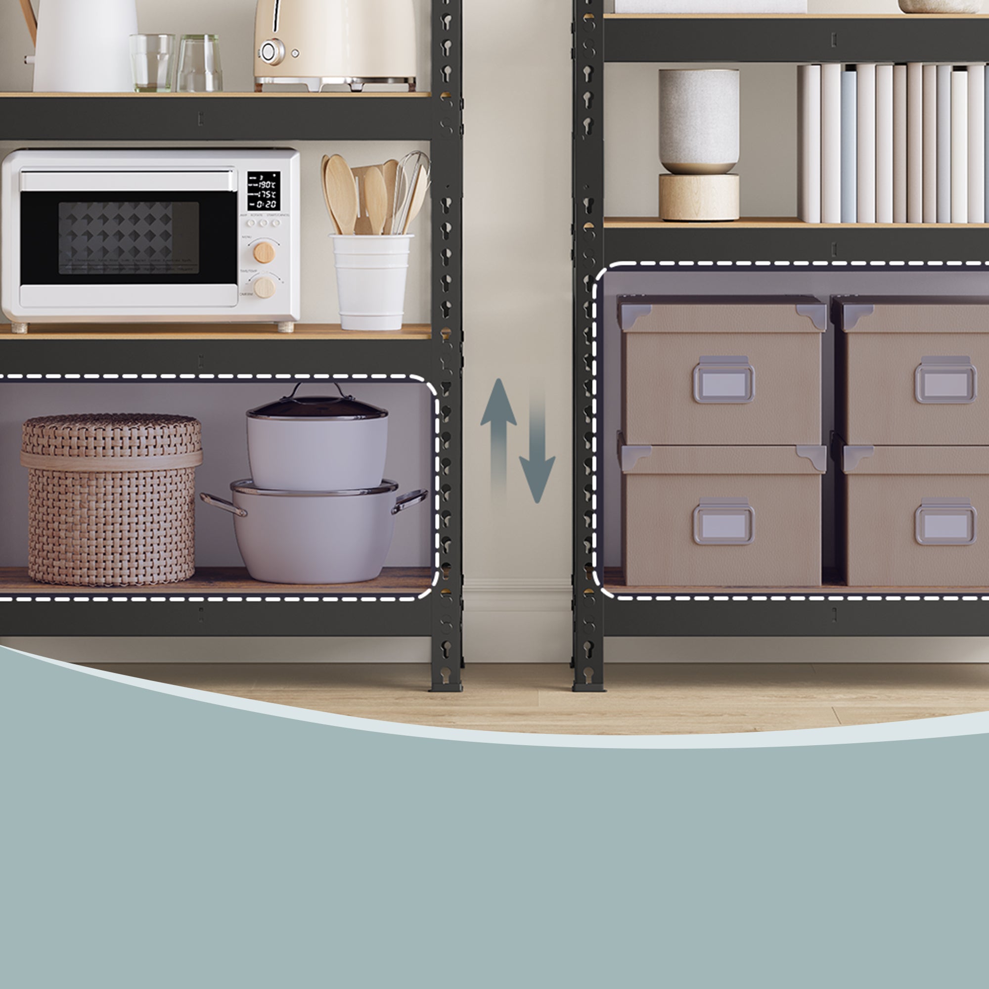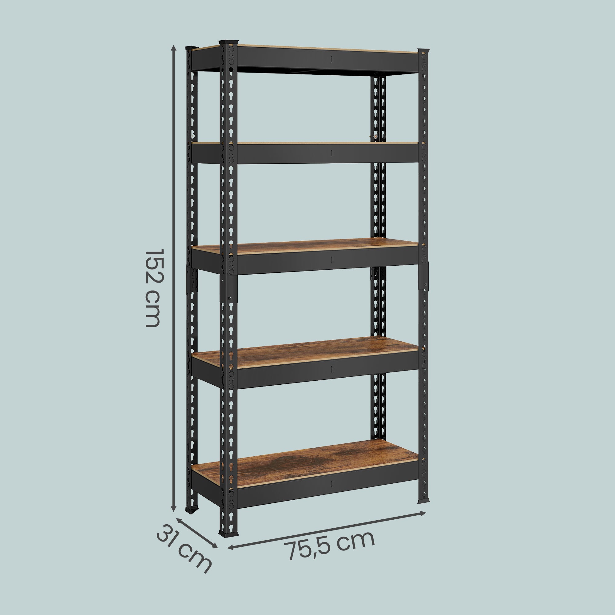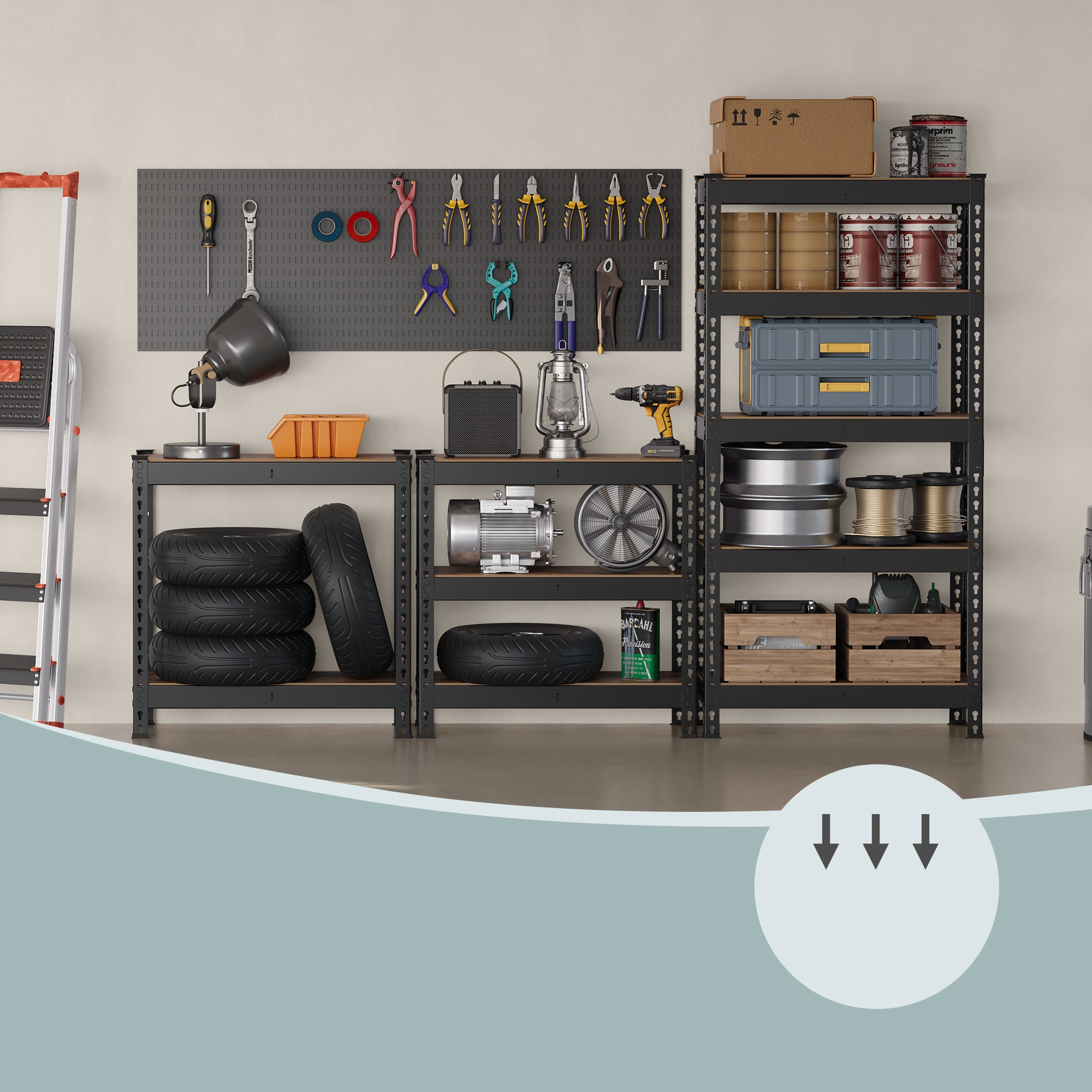 Hyldernes højde kan justeres i trin på mindst 3,5 cm, så du nemt kan opbevare alt fra kasser og beholdere til værktøj og sportsudstyr.