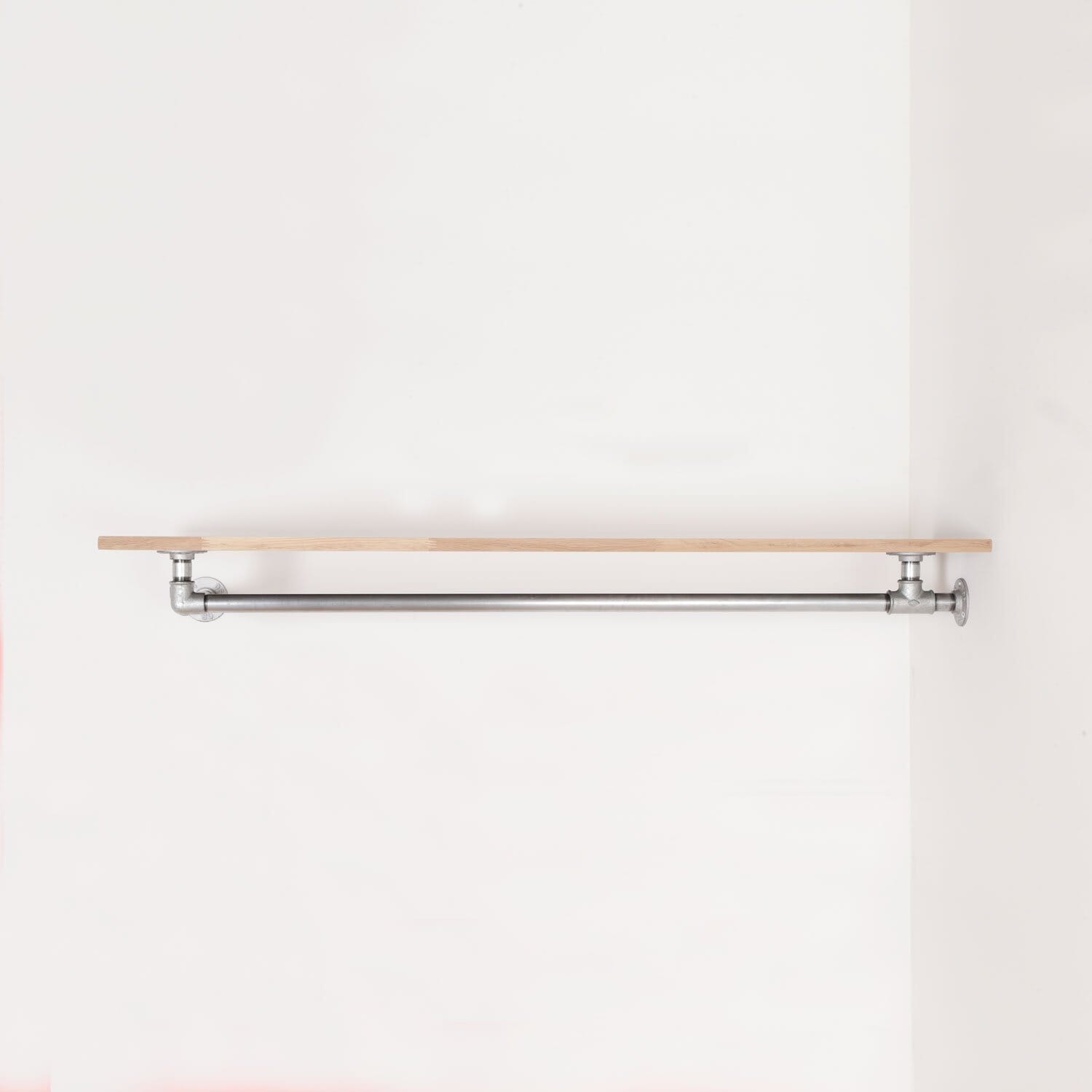 Organisér dit tøj med stil og funktionalitet - Liam Bøjlestangen i vandrør med hylde i er den ultimative løsning til at organisere dit tøj med både elegance og praktisk opbevaring. Den er ikke blot en bøjlestang; den er en alsidig opbevaringsløsning med en integreret hylde. Lad os præsentere Liam Bøjlestangens imponerende kapacitet og unikke design.