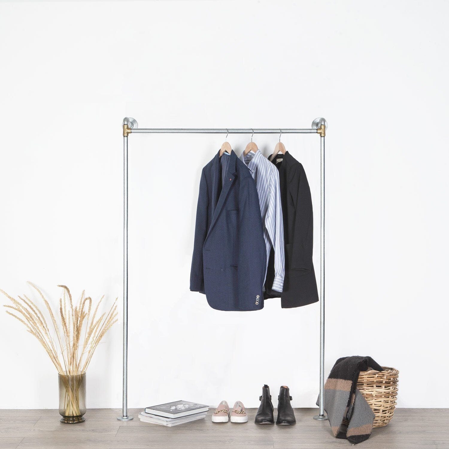 Dette tøjstativ er ikke blot en engangsopgradering til din opbevaringsløsning. Det er en investering i fremtiden. Vores London tøjstativ i sølv med messing vandrør kan tilpasses efter dine skiftende behov. Med muligheden for at tilkøbe ekstra rør og samlestykker fra os, kan du nemt udvide eller ændre din opbevaringsløsning, når din garderobe vokser eller din indretningsstil ændrer sig.